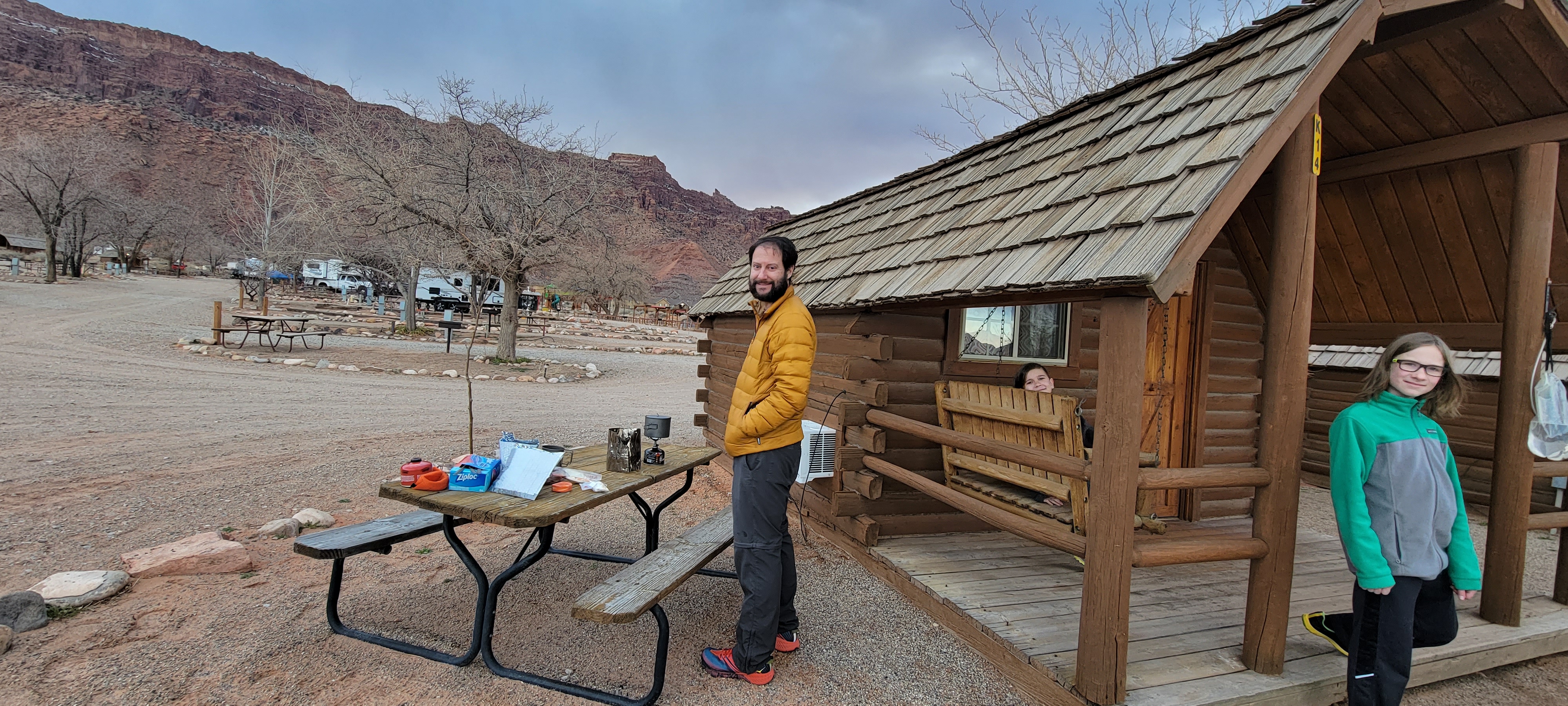 We ended up taking a southerly route through Albuquerque to avoid winter storms in Colorado and Wyoming. This mostly worked but we still hit snow in New Mexico, Utah, and Idaho. On the plus side, we grabbed some awesome breakfast burritos on the way through Albuquerque and stayed at a KOA in Moab with awesome views.