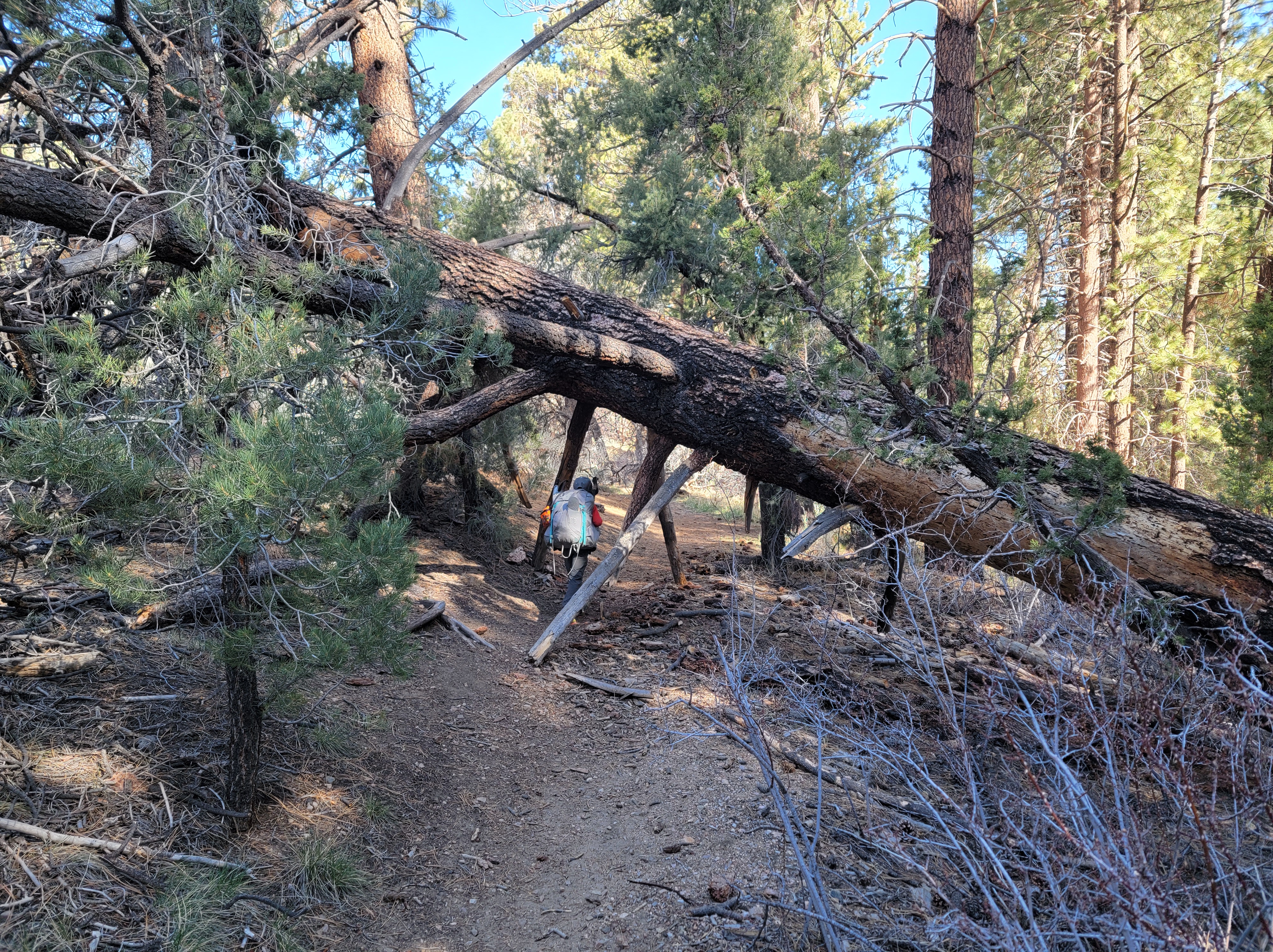 Today was an easy 11 mile hike towards Big Bear for our next zero. The morning started off cold for the first couple miles until we got out of the shade, but the day stayed cool and comfortable until we got to our stopping point at Highway 18. The hike was easy compared to the last few days and passed in and out of pine stands most of the way. Somewhere in the middle we passed the 200 mile mark.