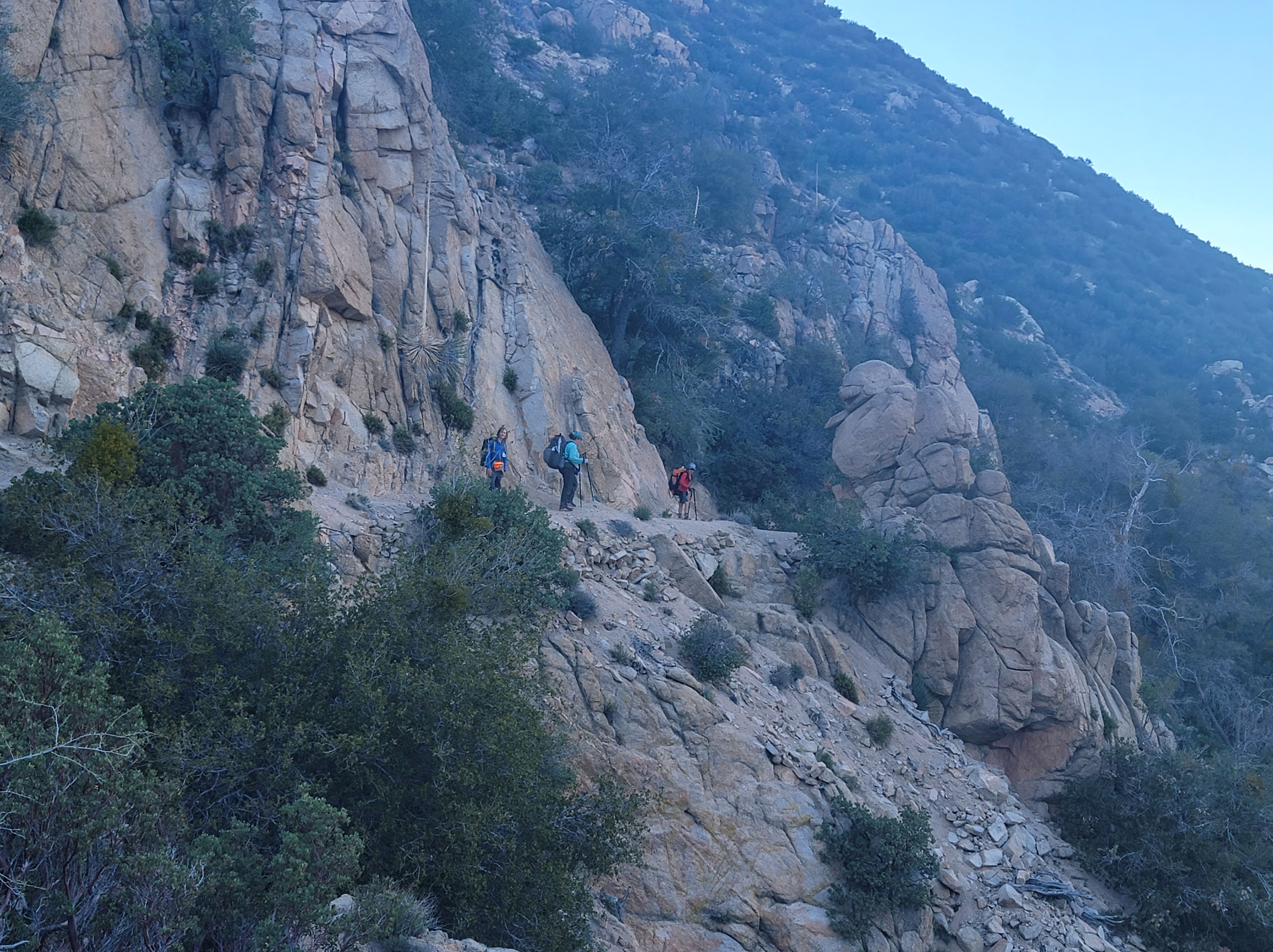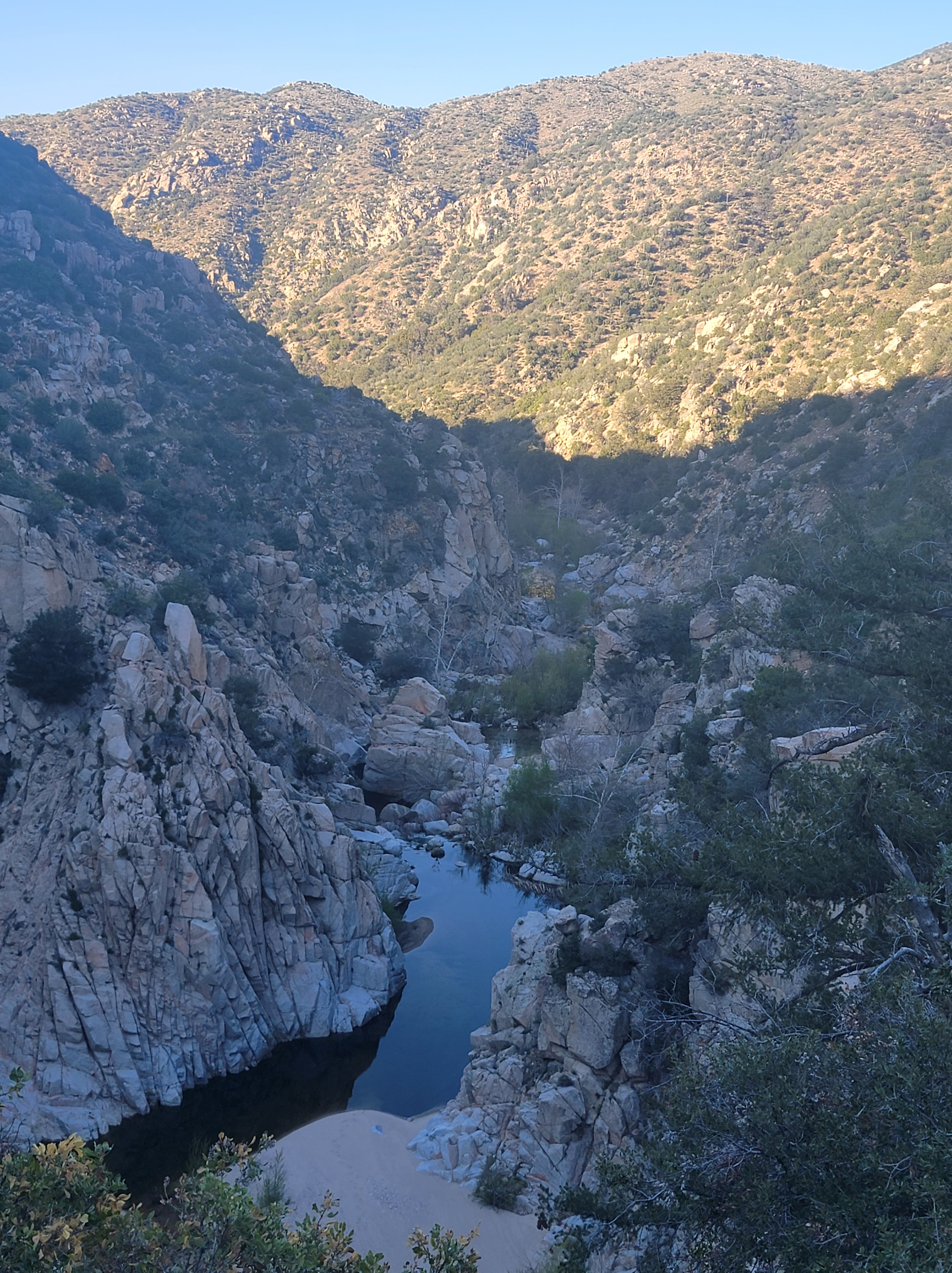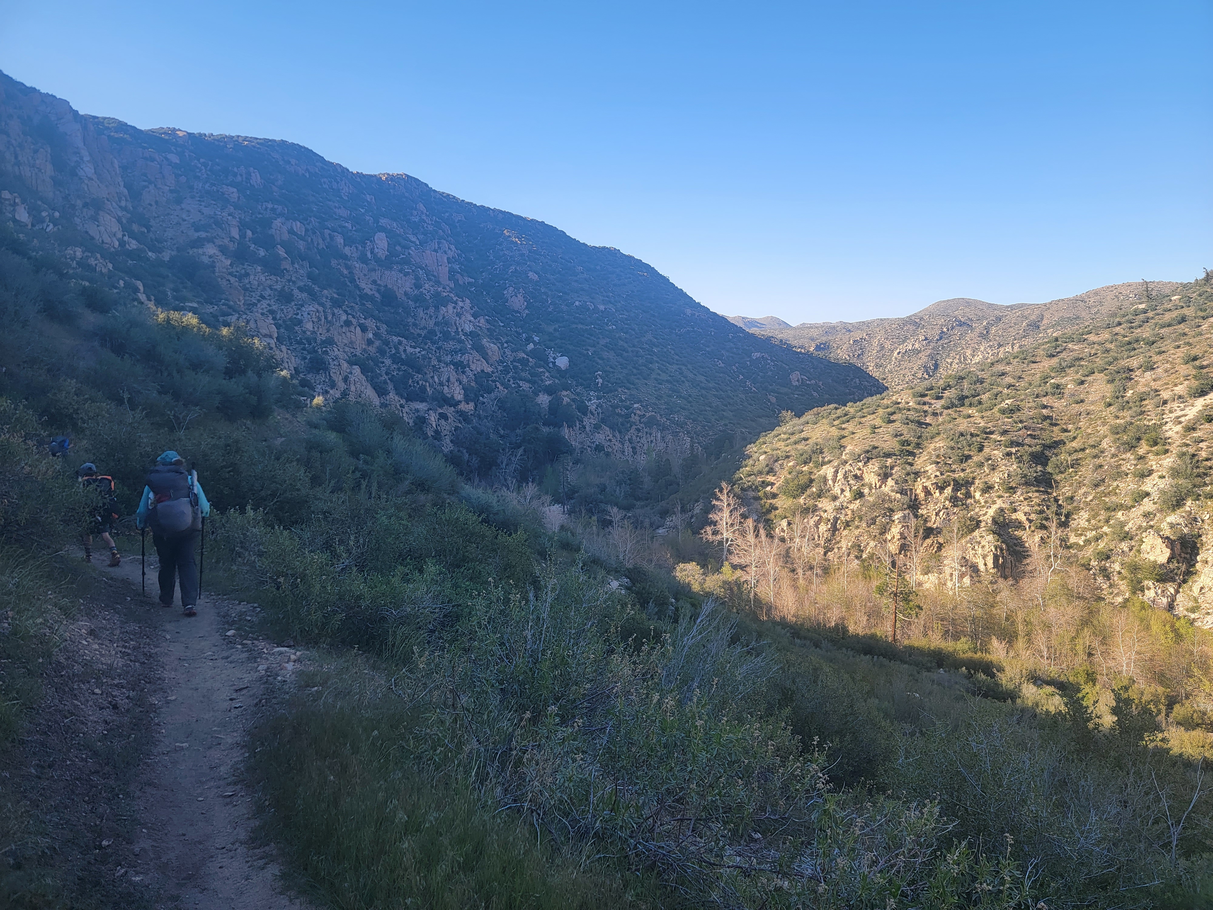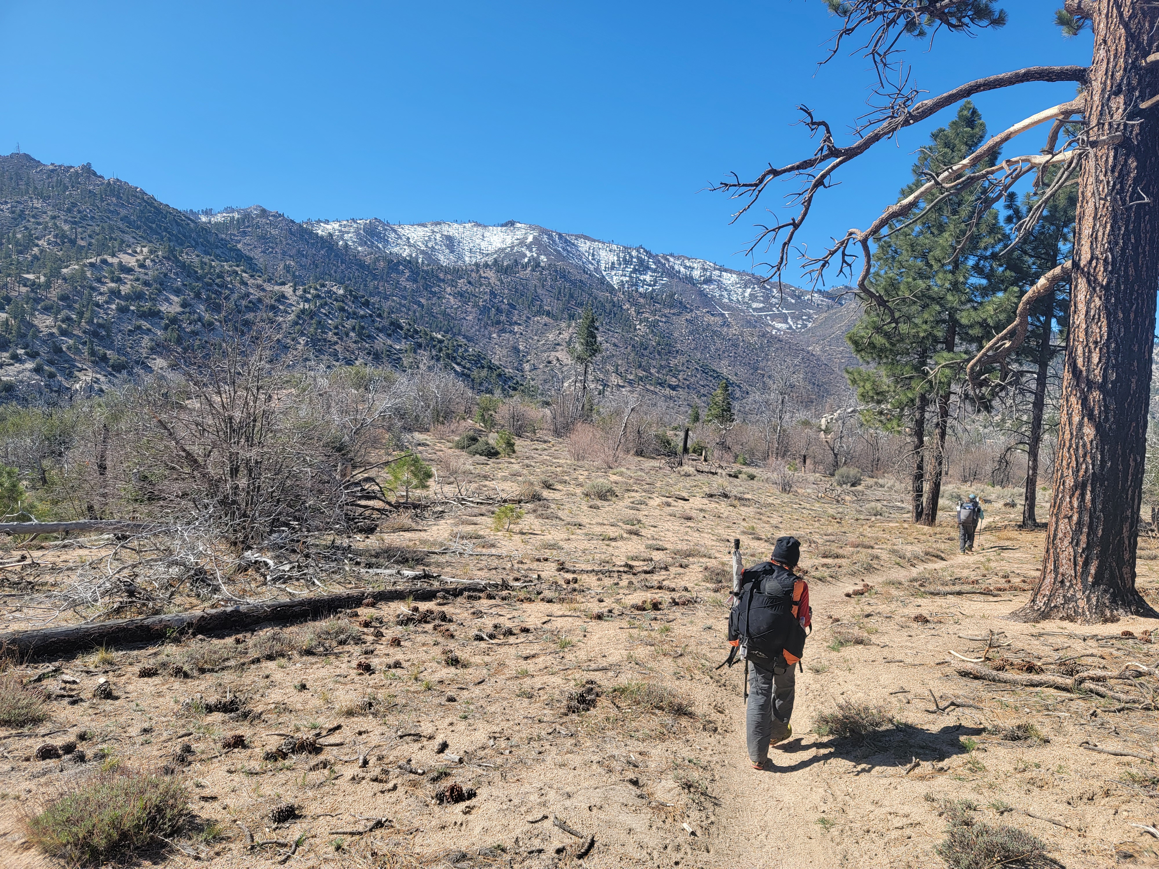 We woke up to the coldest morning yet. All of our water bottles were frozen solid, and it was pretty unpleasant outside the tents. We waited until the sun hit camp to get moving. Today’s plan was to cover 17 miles to position ourselves for an easy morning hike into Deep Creek Hot Springs tomorrow. Like yesterday, today would be mostly downhill.