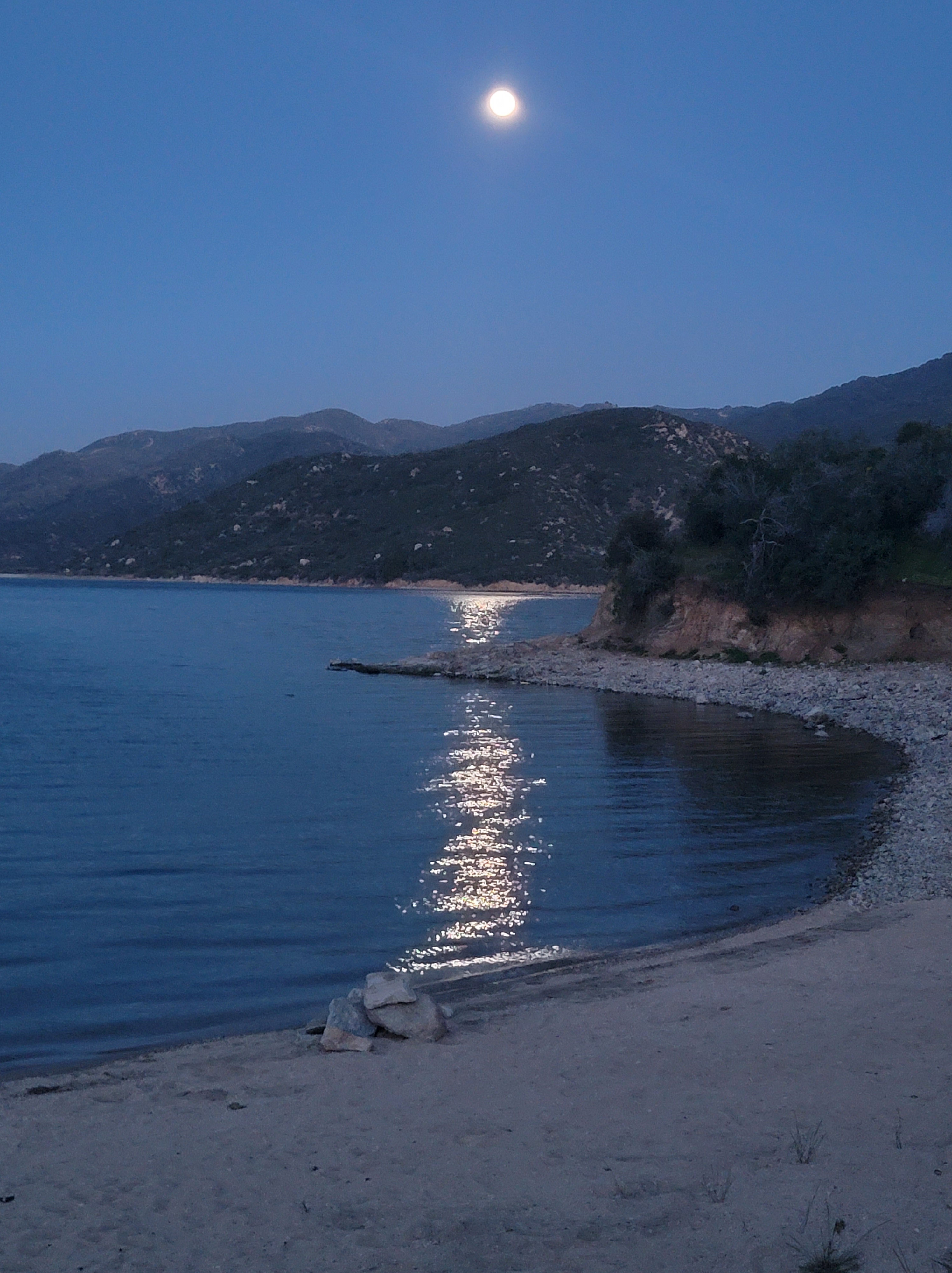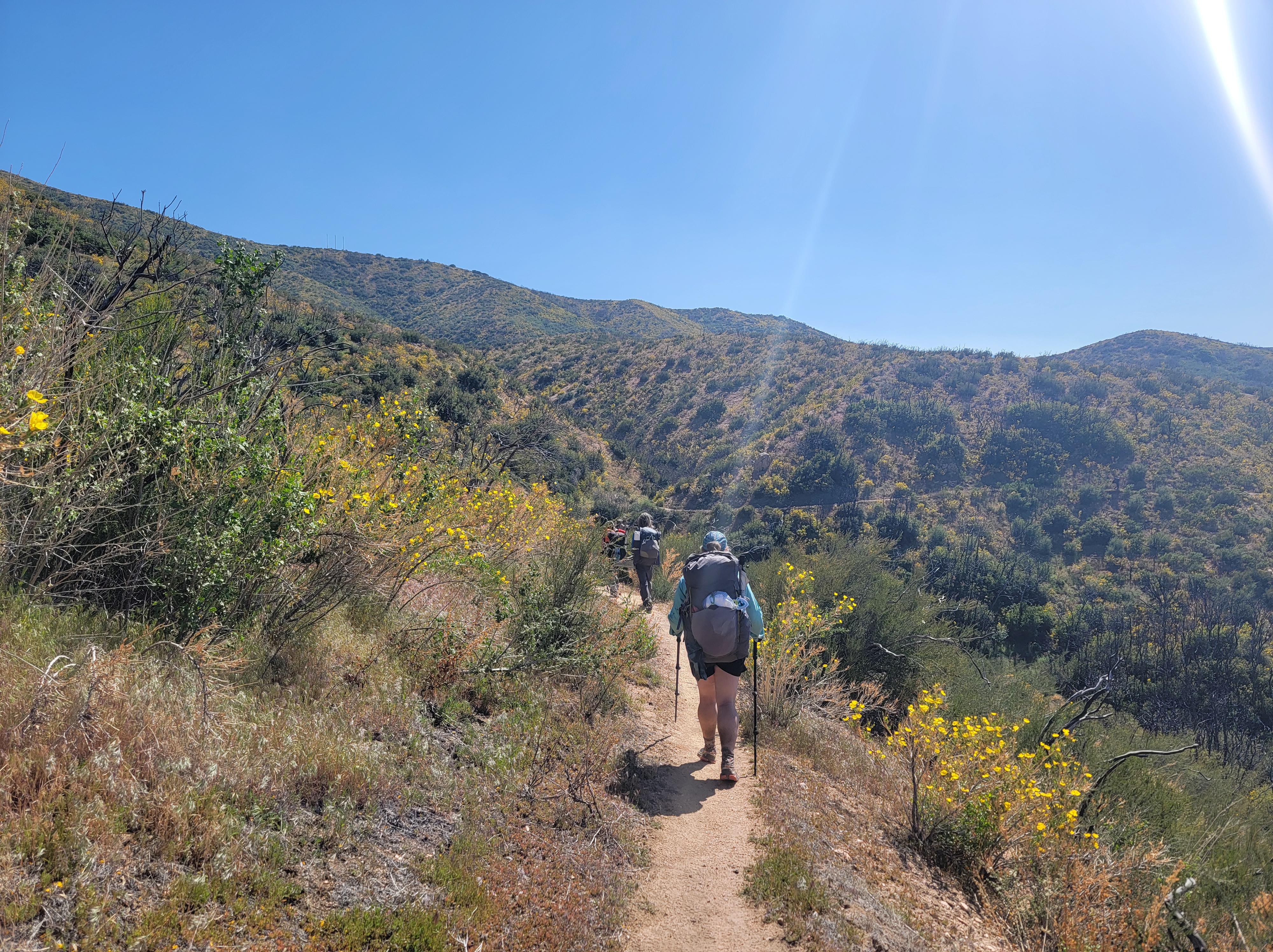 The second goal of the day was to hike to Silverwood Lake and find a spot to stealth camp that we wouldn’t get kicked out of. We’ve heard of people getting asked to leave when camped near the lake and were trying to avoid that. The hike was fairly easy, winding along hillsides above a valley for most of the day. The last couple miles took us up a final climb and then down to Silverwood Lake.