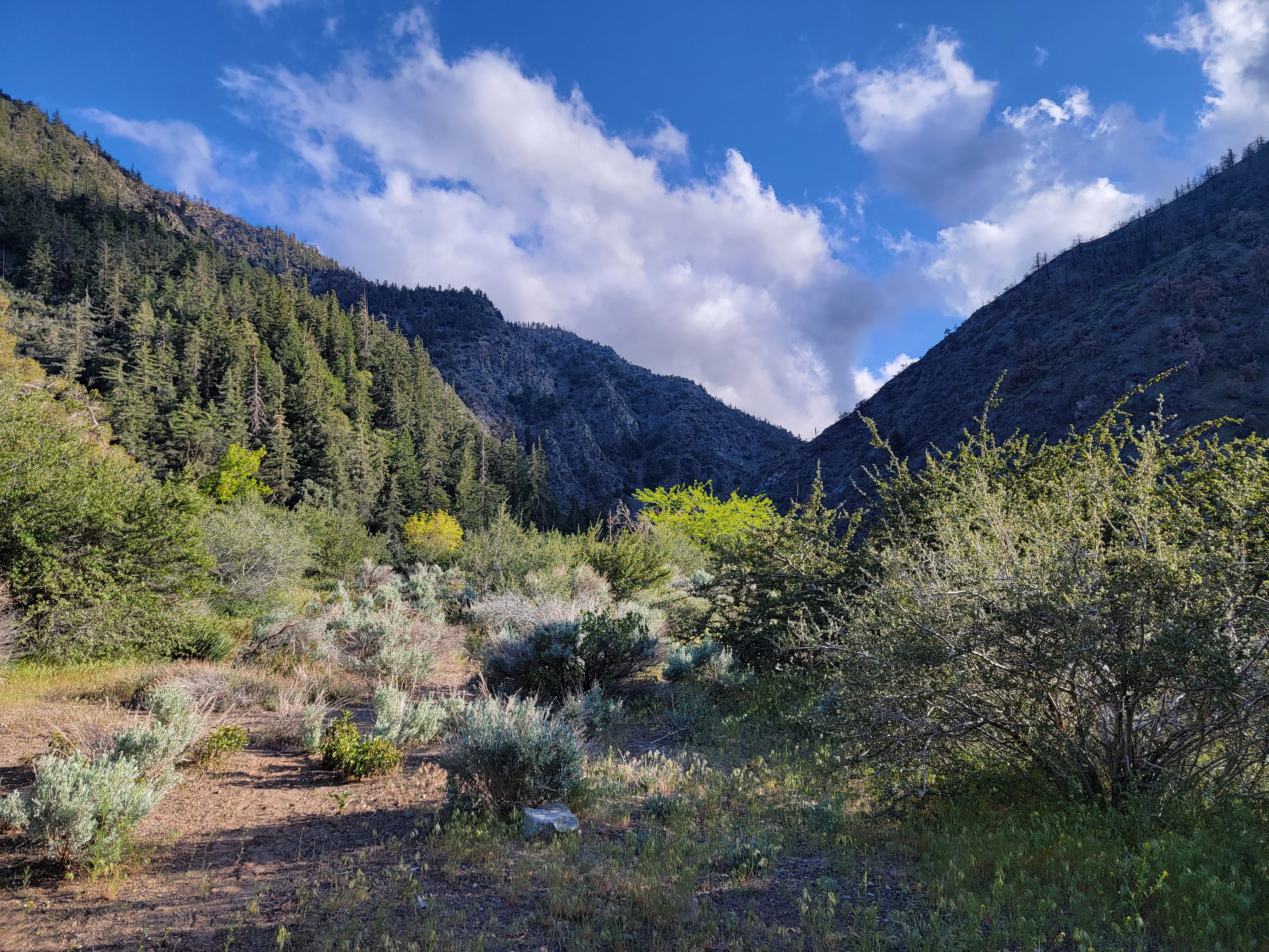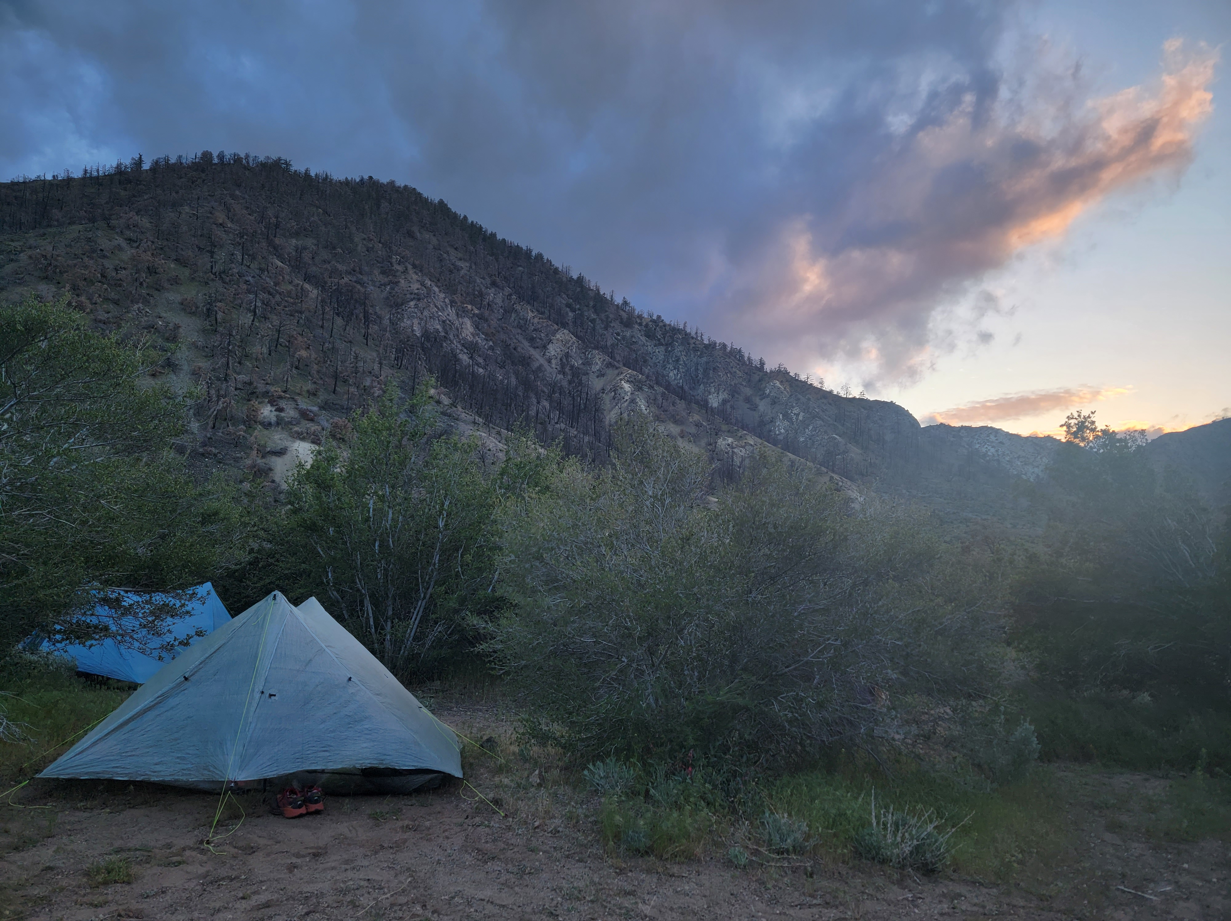 We decided to take the alternate which would take us 5 miles to a campground. The hike was easy, mostly downhill, and kept us out of the wind. We got into the deserted Southfork Campground mid-afternoon. Blue Lizard and I relaxed the rest of the day while the kids played. The storm moved in overnight, but we had descended enough that we were below the snow line and only got rained on. Tomorrow’s plan was to take the next partof the alternate which would climb back to the PCT over about five miles.