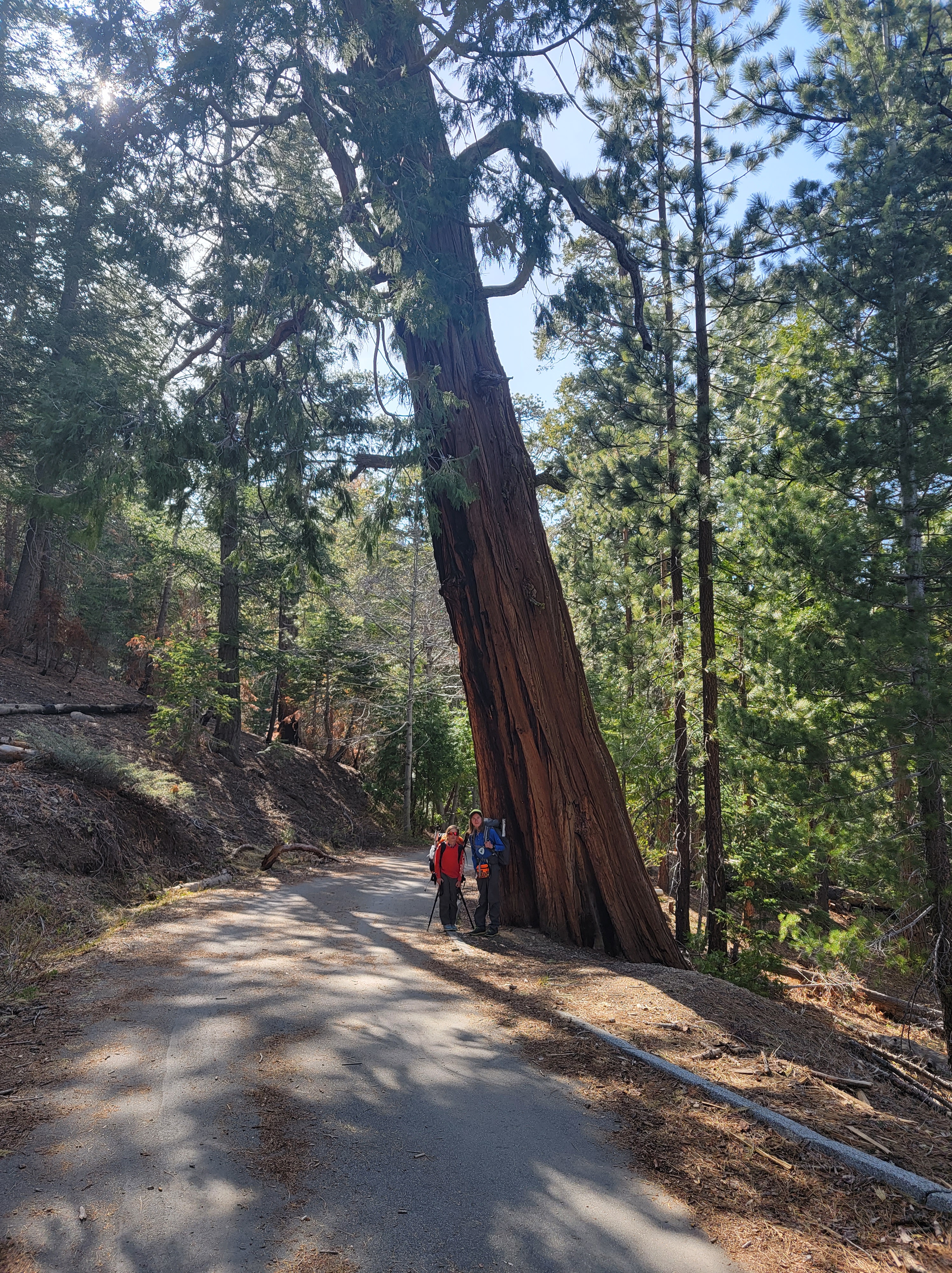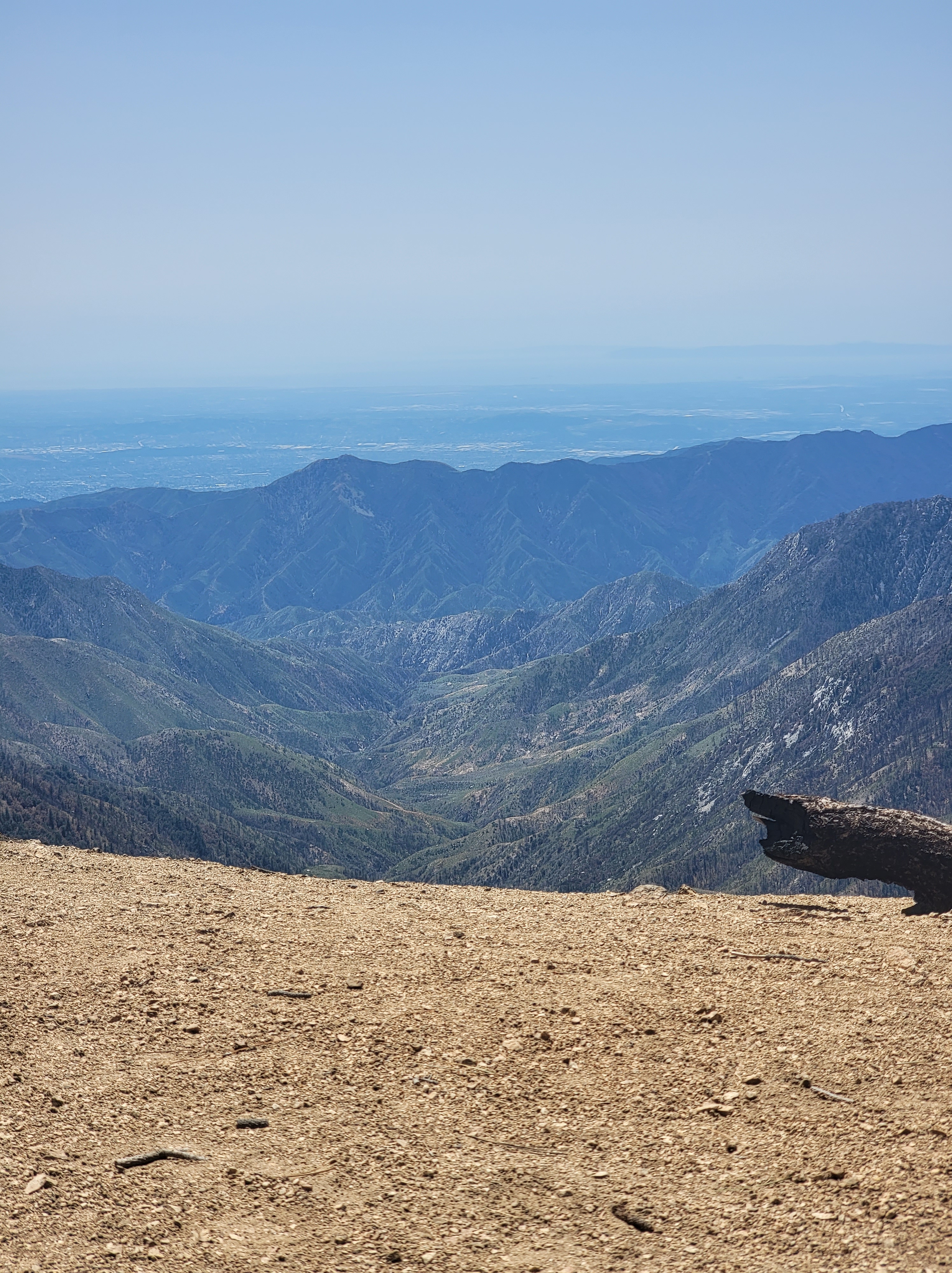 We eventually got moving only to be greeted by the ever present wind. The trail descended to a parking lot before climbing again, then descending to another parking lot before climbing again, and then repeating the cycle one more time. Most of today’s hike would be within the Bobcat Fire area which was a bit depressing to see. We ran into Tony on the way down the first hill. We hadn’t seen him in almost a month.