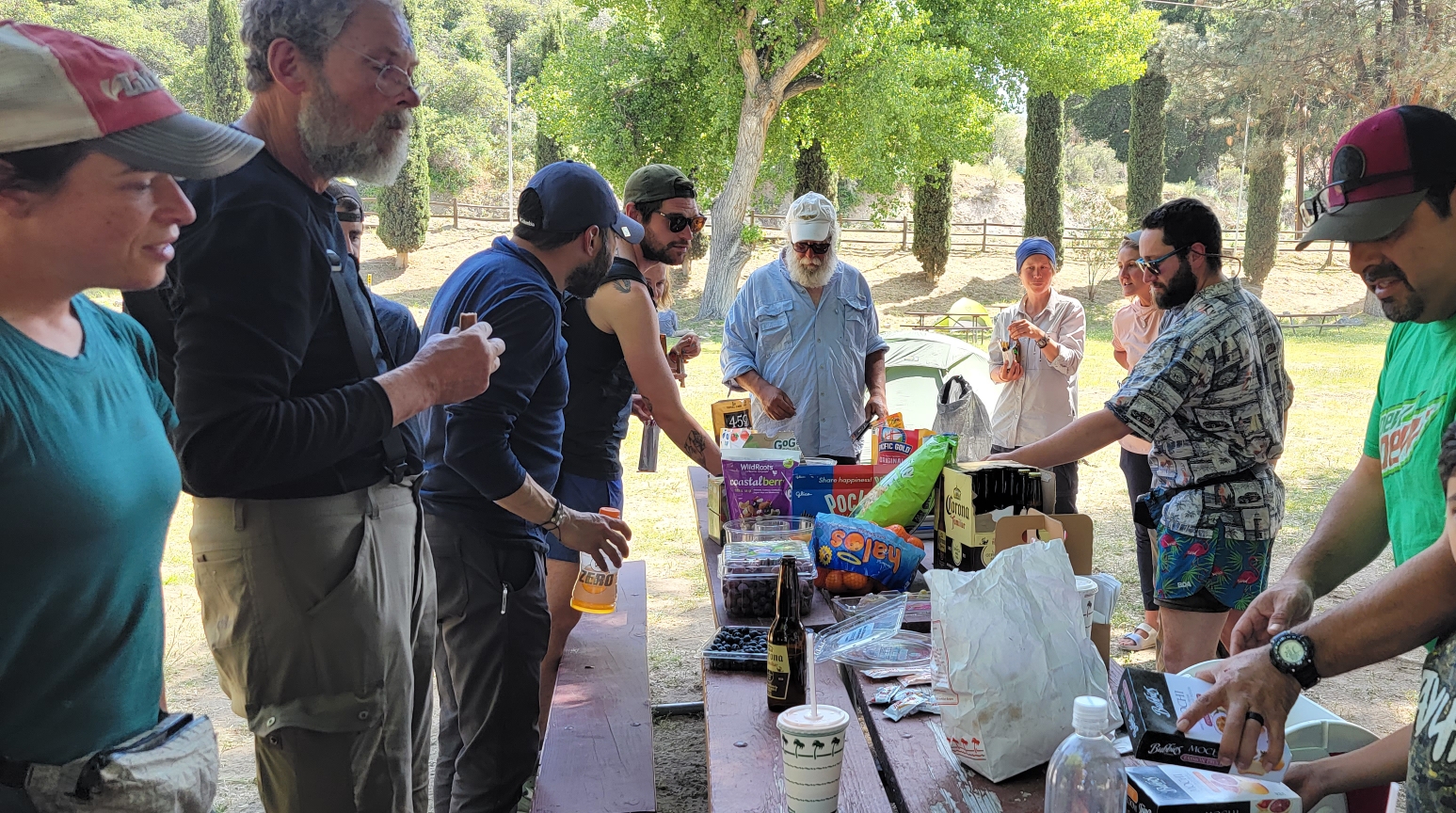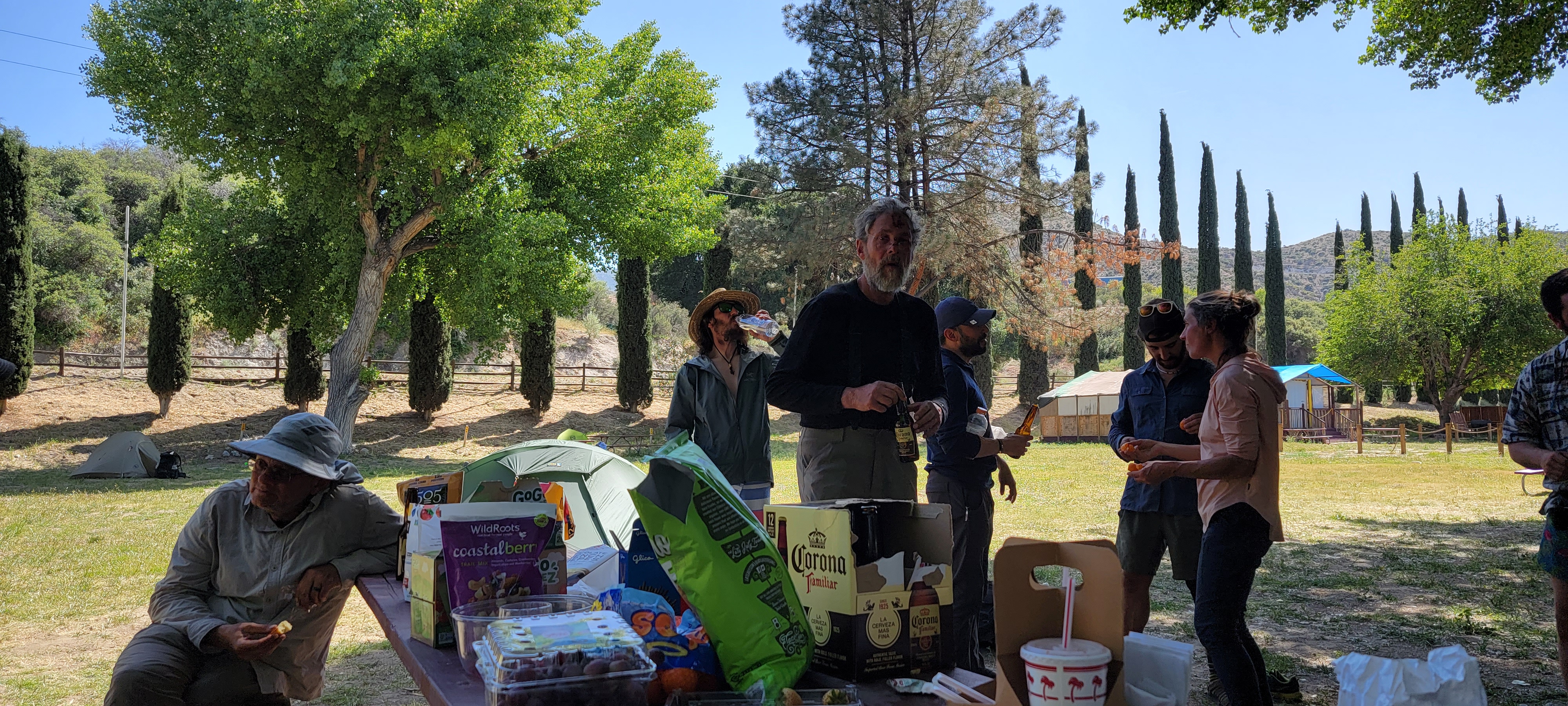 The highlight of the day was trail magic from Buttons (Eric) and his family who we’d met weeks before at Whitewater Preserve. He came out to meet us despite the fact that his wife had unplanned surgery just days before. He showed up with what was easily the best spread we’ve seen yet. We started with In-N-Out burgers, followed by all sorts of fruits and snacks. We visited with Buttons and stuffed ourselves for a few hours while our kids and Button’s kids played. We had a great time and are so thankful to have met Buttons and his family and hope we’re lucky enough to meet up with them again.