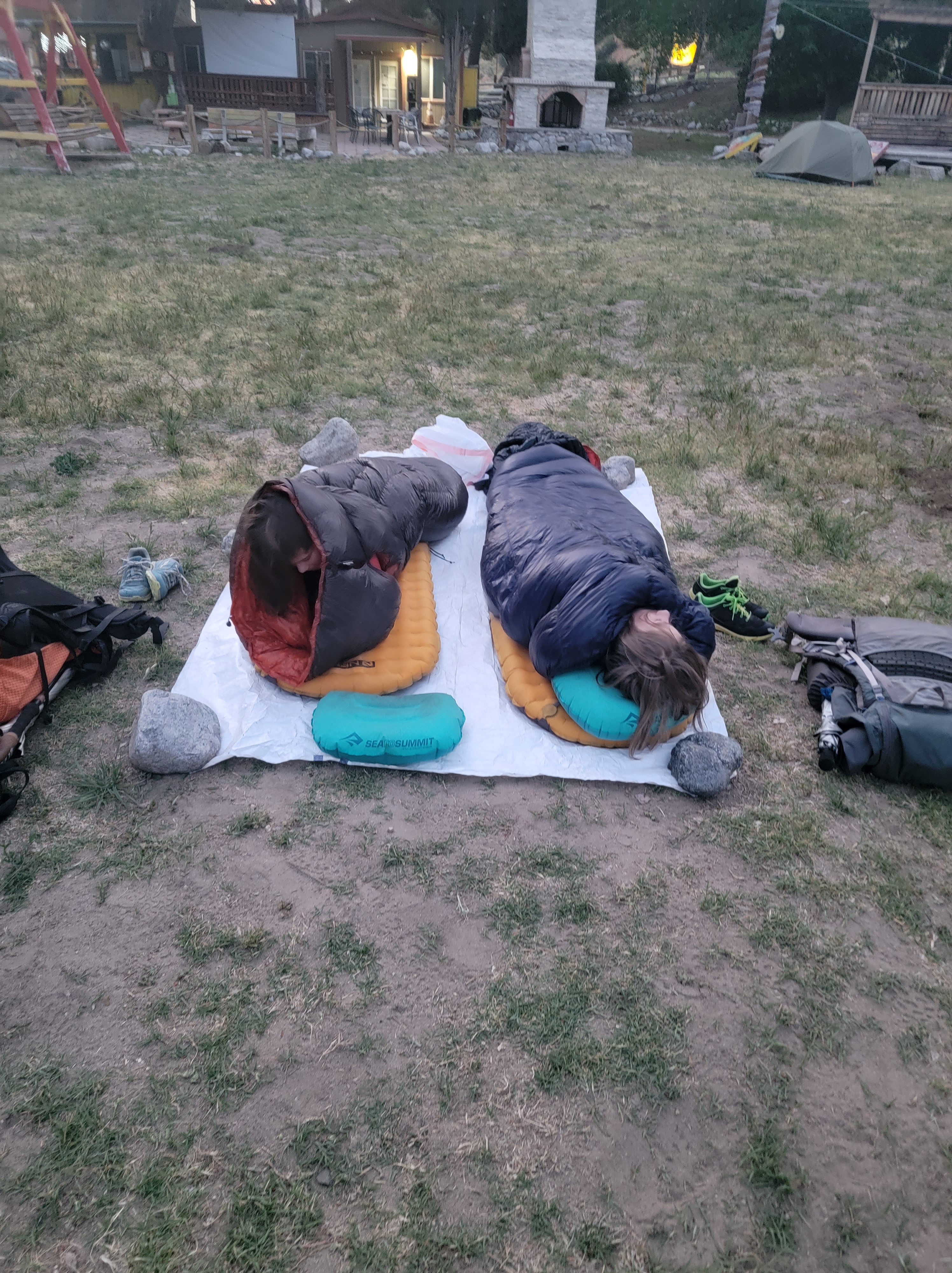 We went to bed early with the plan to make an early start tomorrow to get to Agua Dulce for lunch at a Mexican restaurant. The days have become noticeably hotter as we’ve dropped in elevation and and are approaching the warmer months. We’ve been spoiled by cooler mountain weather, but know that early morning and evening hiking are about to become the norm. The kids, having taken to cowboy camping, setup in the middle of the campground on their own.
