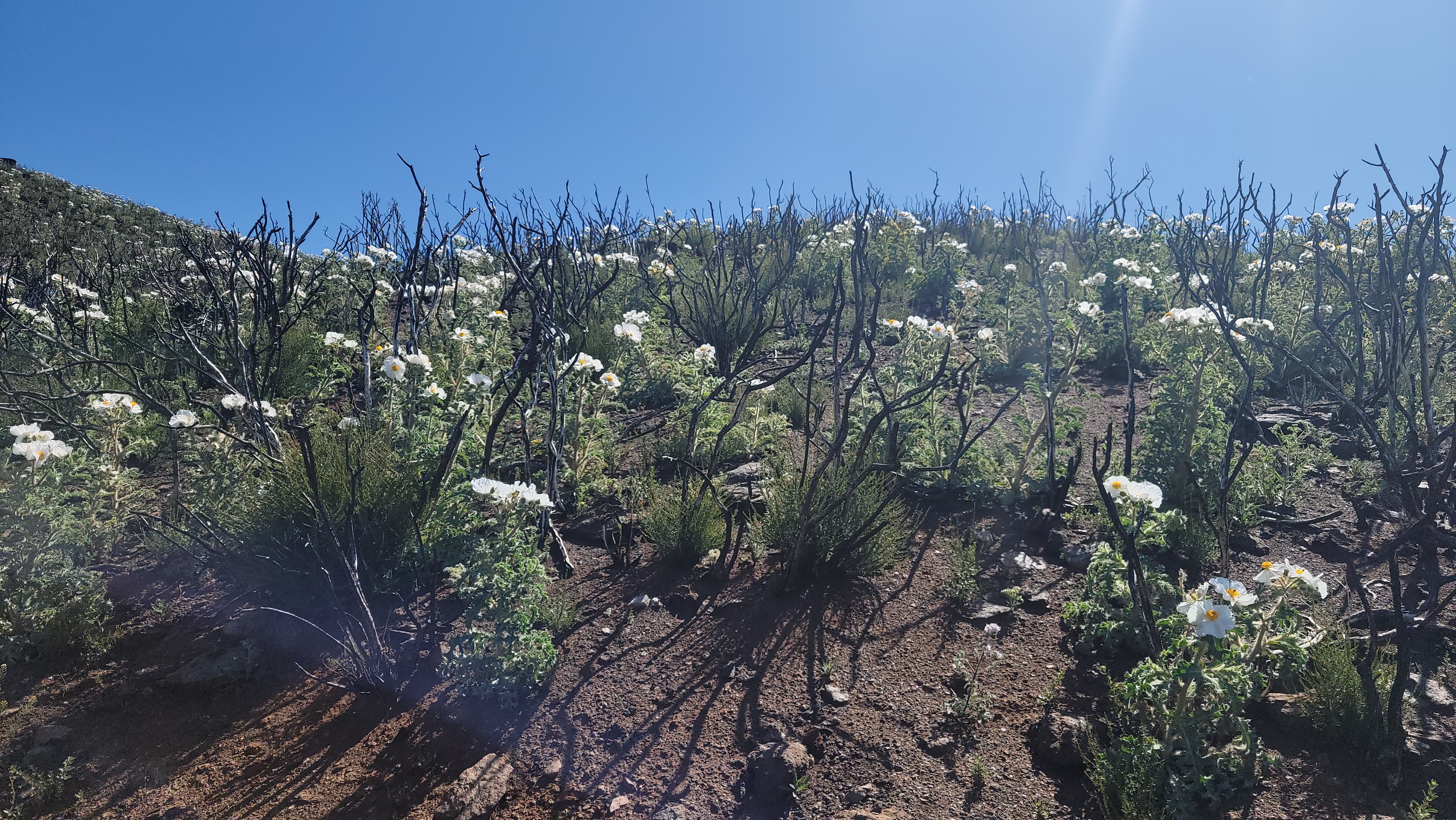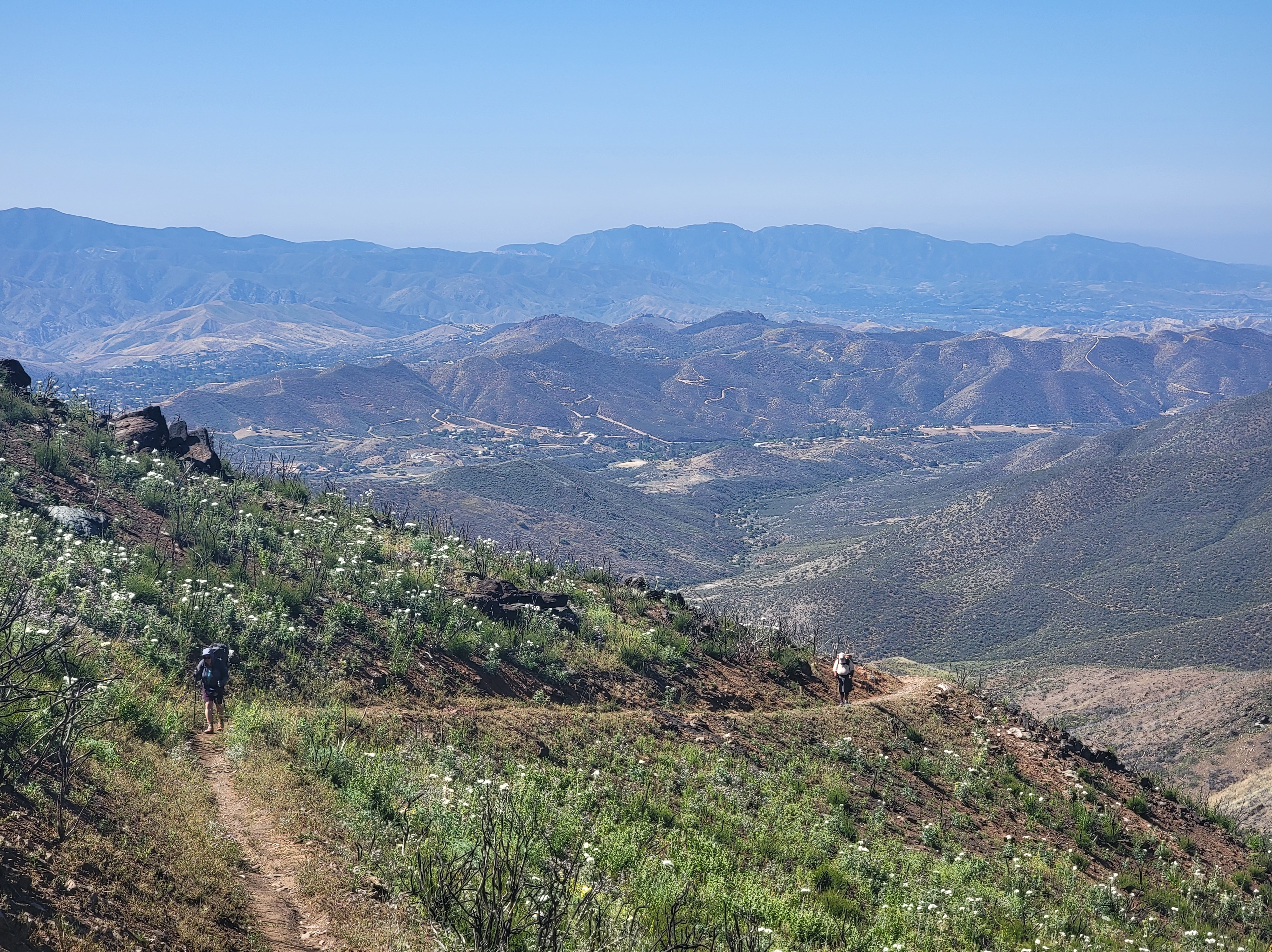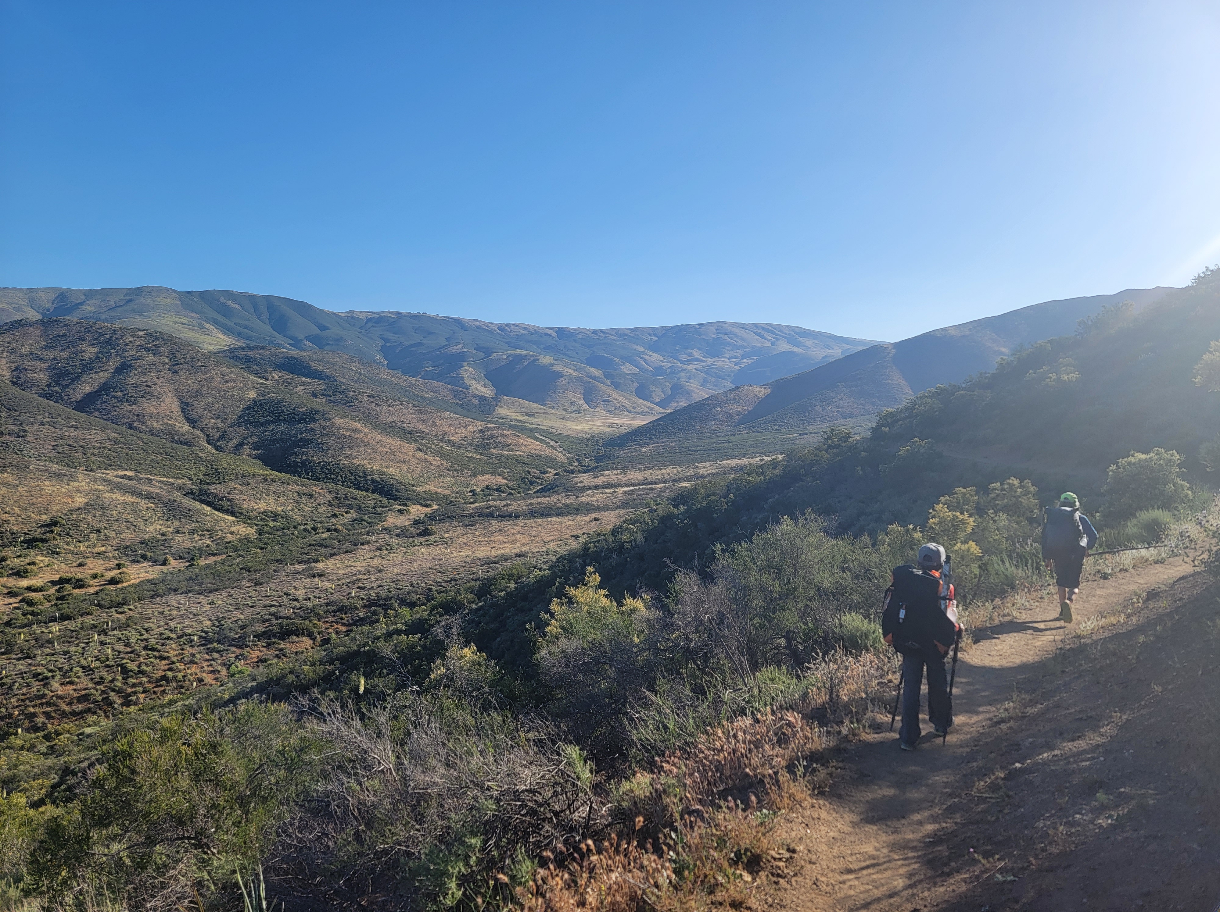 We left Agua Dulce early to try to get ahead of the heat since we were going to start the day with a lot of uphill. Midway through the climb we heard the familiar sound of a helicopter which proceeded to circle the valley below us before lowering a paramedic. After Vikings experience we were all worried they were picking up another hiker. After a few minutes it picked up the lone paramedic, hovered over a different location, and then flew over the hill out of view. This was apparently training, but nonetheless was a bit nervy for all of us.