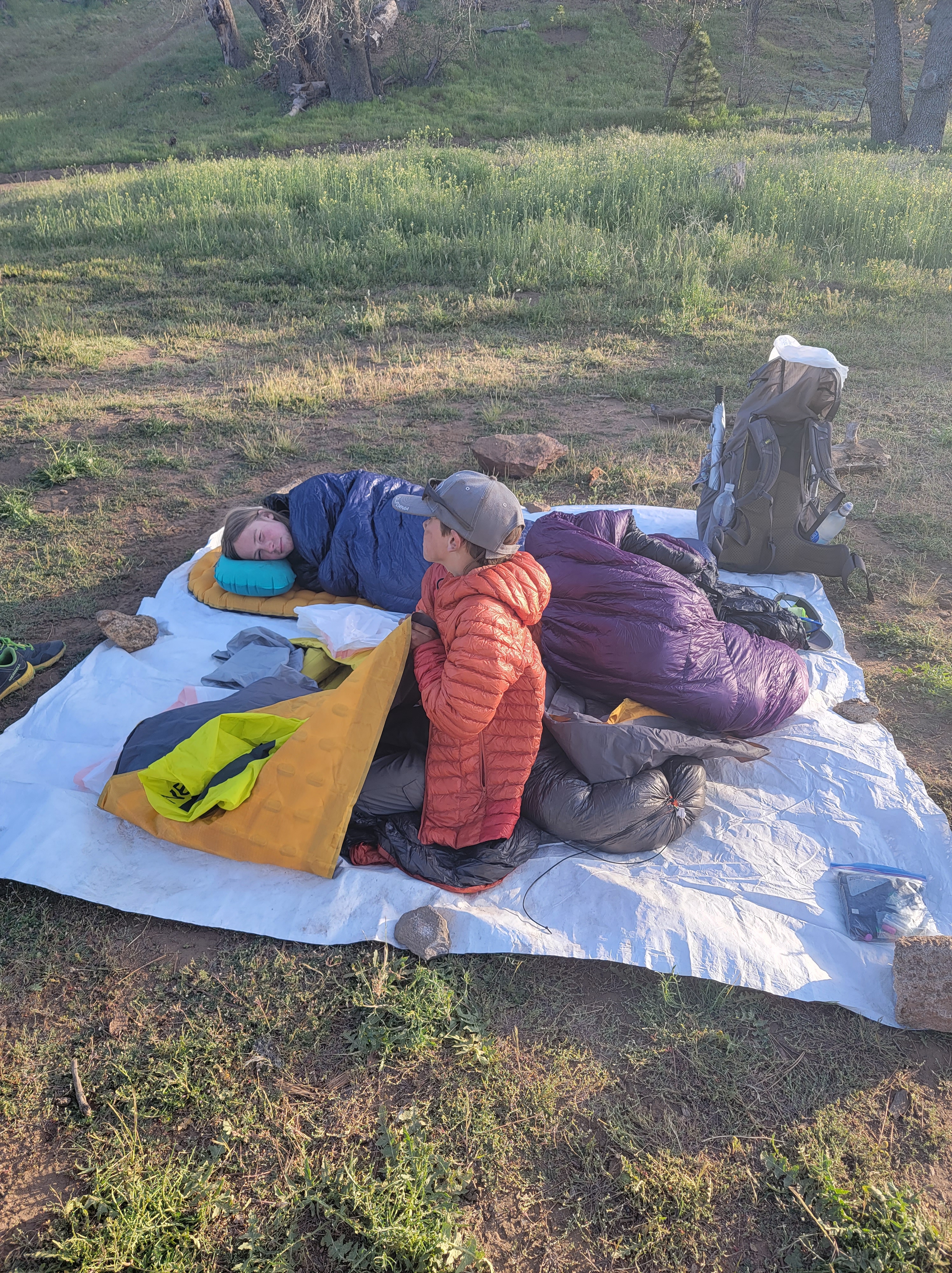 We finished the day hiking back through live trees to Sawmill Campground. Waterboy went to check the campground first since a day before there had been a man yelling at people while firing his crossbow in the campground. The only crazy people to be found were fellow thruhikers so the all-clear was given and everyone else made their way to camp. We cowboy camped again to help us get out quickly the following morning. We apparently lucked out by hitting this campground when we did.