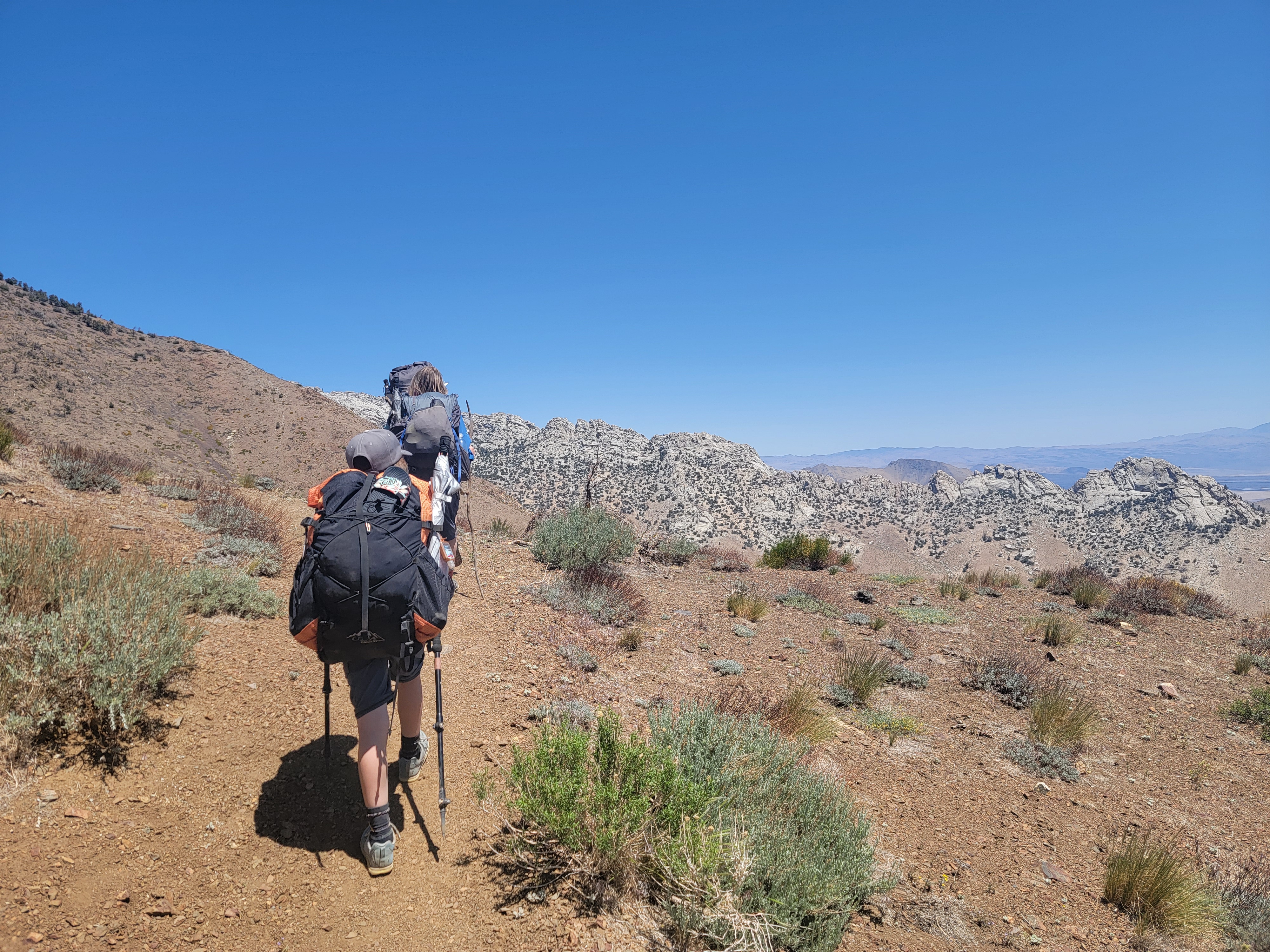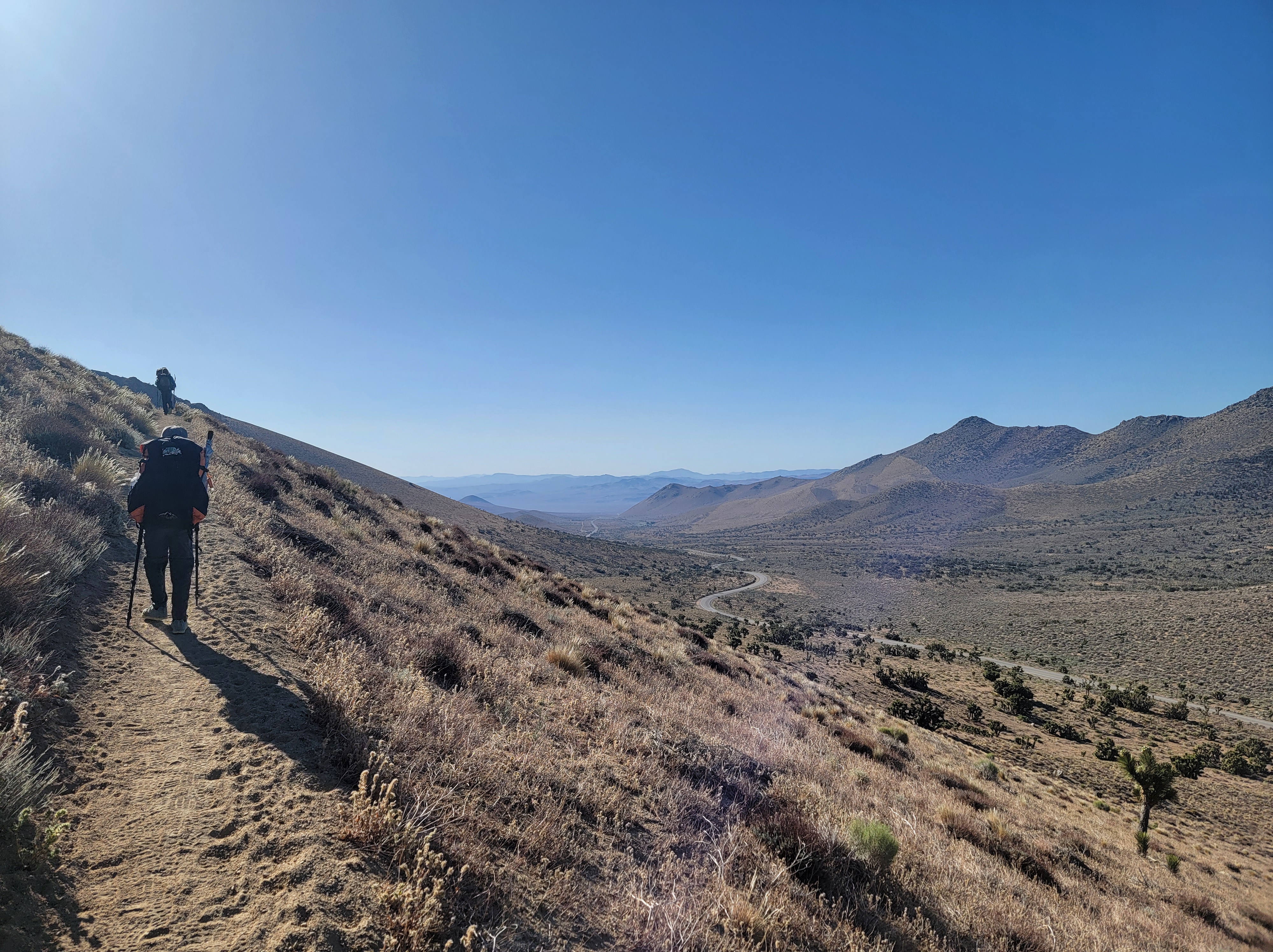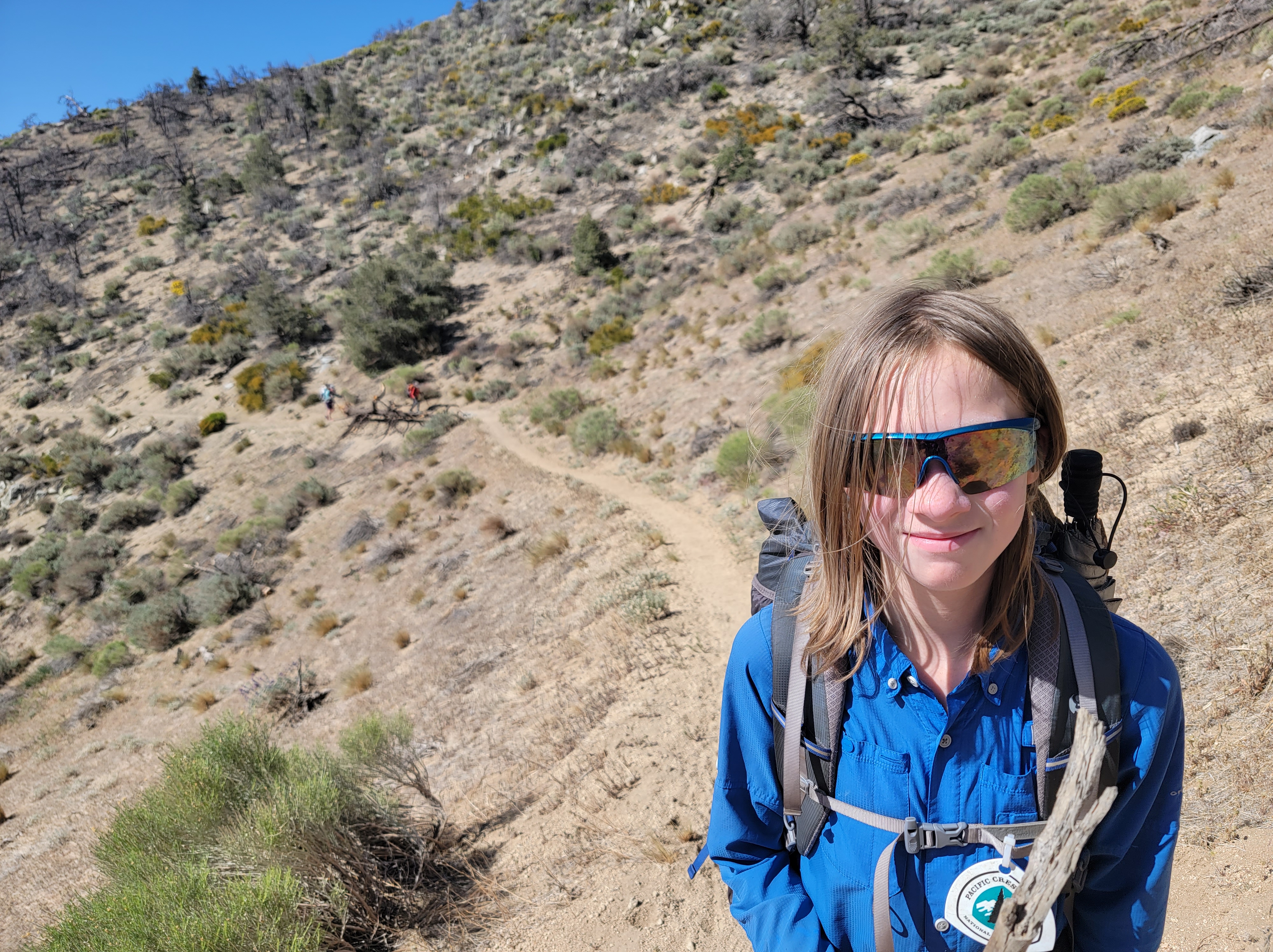 We caught an early ride with a trail angel, Amy, partly to get an early start and partly to avoid another bumpy bus ride. We were on trail at Walker Pass a little after 8am. The trail immediately climbs up desert hills, again, but we’re comforted knowing we’re only 50 miles from the Sierra and the end of the desert. As with the last few weeks, the goal for today is to get to the next water source, this time 17 miles away.