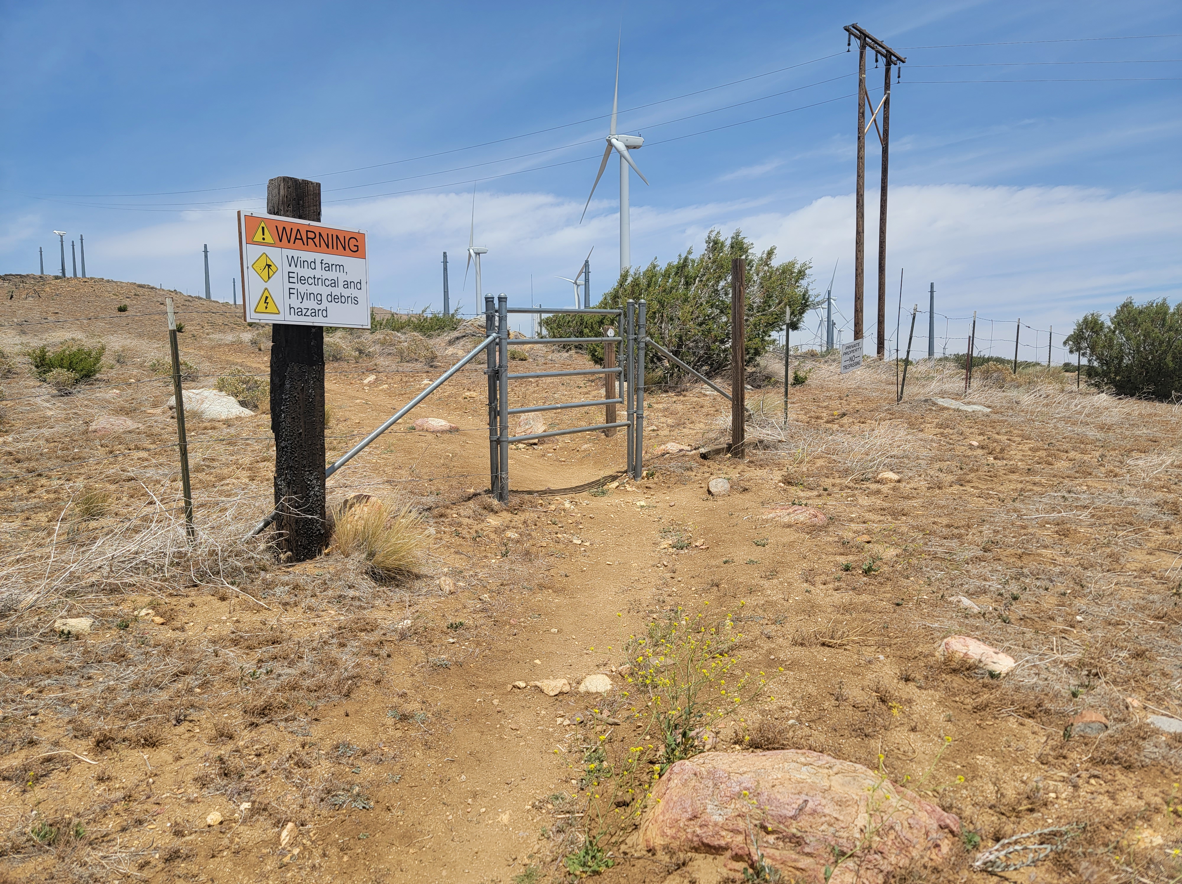 We packed up the next day and drove first to Tehachapi so Waterboy could pick up an 8 mile stretch through a wind farm that we skipped the first time through.  Everyone else went into Tehachapi to eat at the German Bakery. The hike was a quick but boring stretch of mostly barren landscape. After the hike we made our way to Ridgecrest for the night.