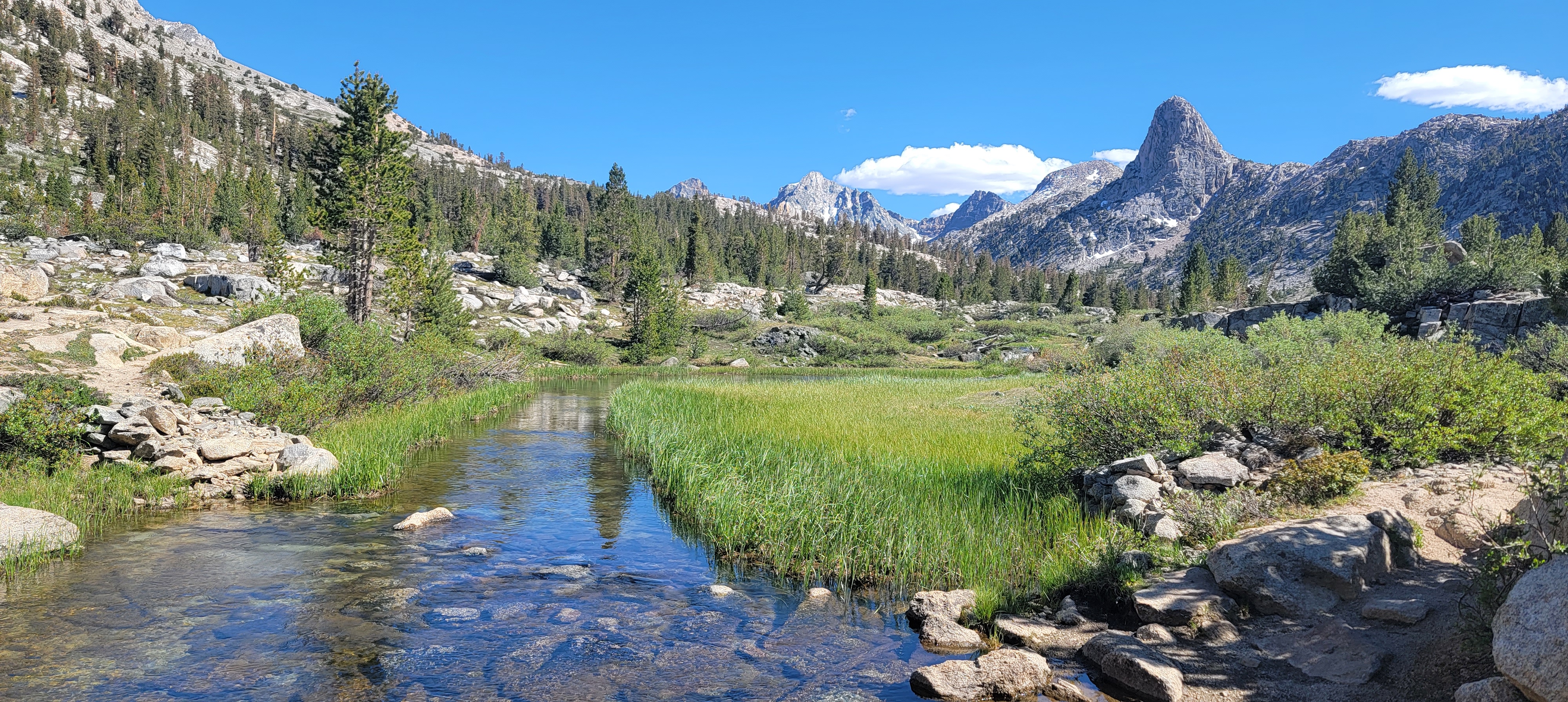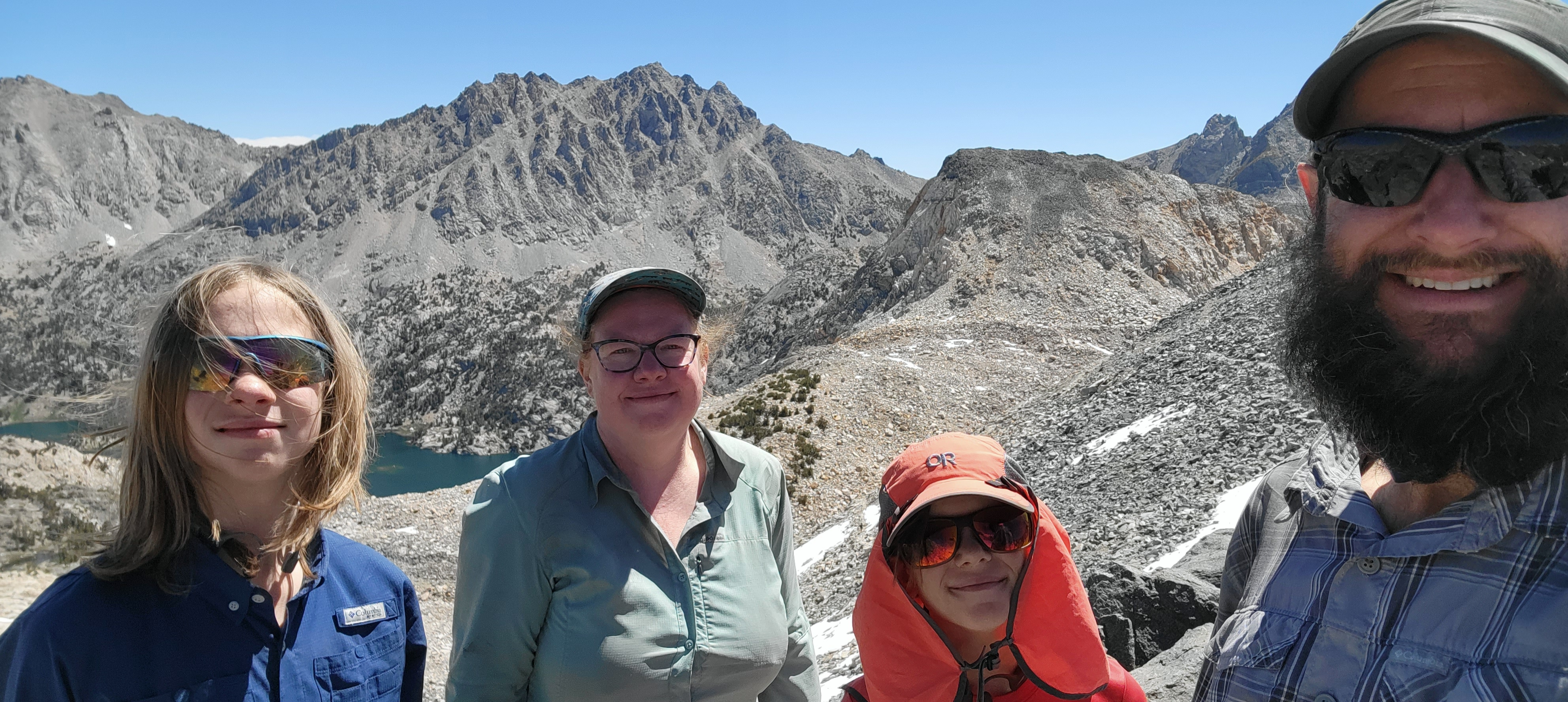 We scour our maps to see if there is an earlier exit.  There is, but it exits on the western side of the Sierra and would take hours and hours of bus rides to get back to our van on the eastern side.  It isn’t the best option but is the only one we’ve got so we plan to hike the 15 miles out the next day.  We talked to someone who had come in the same way and gathered that it is mostly downhill and ends at a parking lot with 50+ cars which means a good chance to hitch.  After deciding on our plans we quickly get into our tents since we’re now into mosquito season in the Sierra and are getting swarmed.