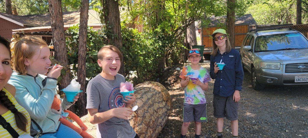We take our time getting moving the next morning before heading to Calaveras Big Trees State Park. The park is home to a couple groves of giant sequoias. We take a fairly short hike past dozens of absolutely enormous trees. We’ve been to Sequoia National Park to see giant sequoias, but it’s still mind-blowing to see just how big these trees are. After leaving the park we gets shave ice again from the place in Twain Harte. The rest of the day is spent relaxing.
