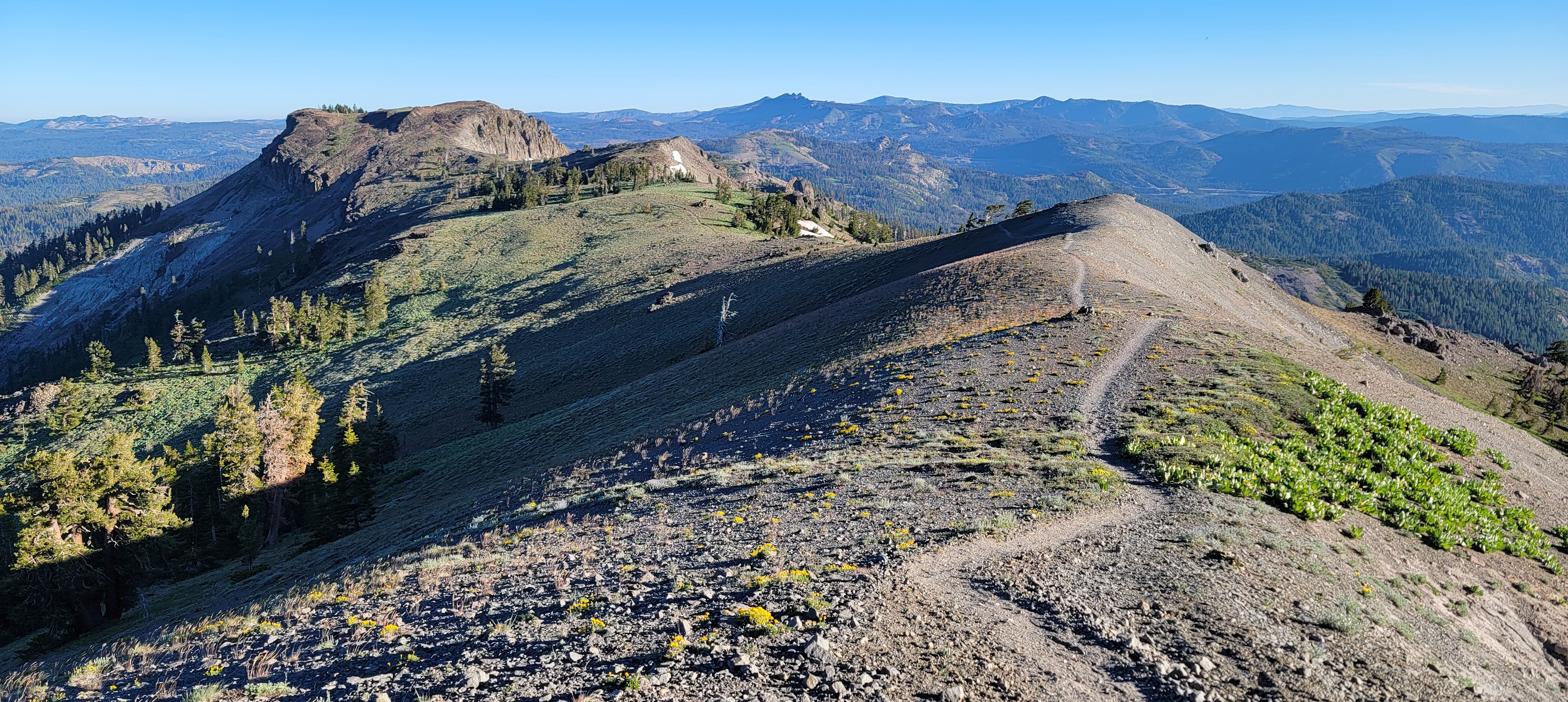 I took my time getting up since I was only 8.5 miles from free beer, but the place serving it, Donner Ski Ranch, didn’t open until 11. I got there around 10am with Crusty Loaf and took advantage of their outdoor charging station while we waited. There were about 10 of us there when it opened and we all got our free 40oz Mickeys malt liquor. Most of us also got lunch and I ate with Crusty Loaf, Hank Hill, and Geesus. You may be wondering if consuming 40oz of beer in the middle of a day of hiking is a good idea. It wasn’t as bad as I might have imagined, but those first couple hills in the afternoon sun were more unpleasant than usual.