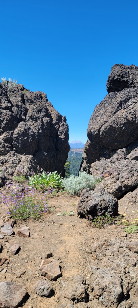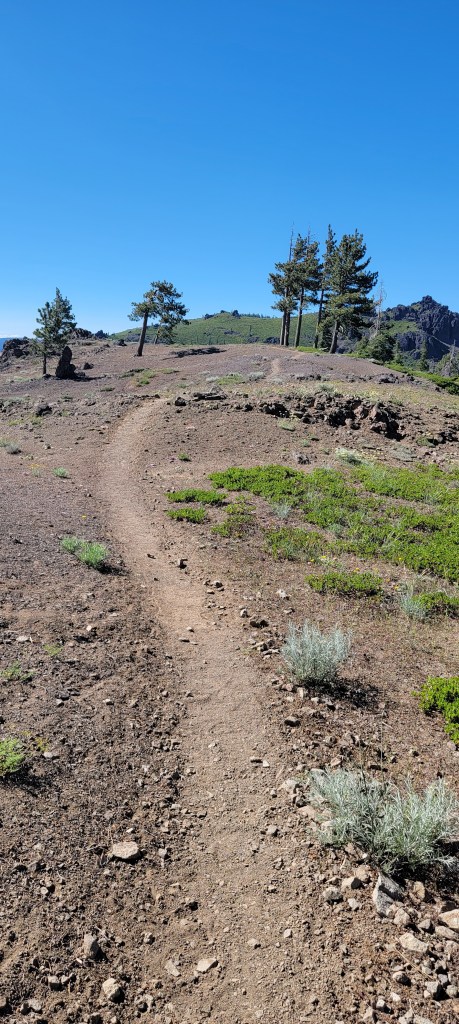 This seems redundant, but I got up early to tackle a hill before it got too warm. I started climbing immediately and would continue to climb 3400ft over the next 8 miles. The climb itself wasn’t too bad but the first couple miles was rocky. This wouldn’t normally be a problem, but I think I pushed my shoes too far and have a blister on the ball of my left foot and another on my right heel. Neither blister is terrible. Every step hurts a little bit, and every once in a while one of the pointy rocks decides I’ve been too comfortable and jams perfectly into a blister. I walk a little slower to try to avoid this but it’s inevitable.