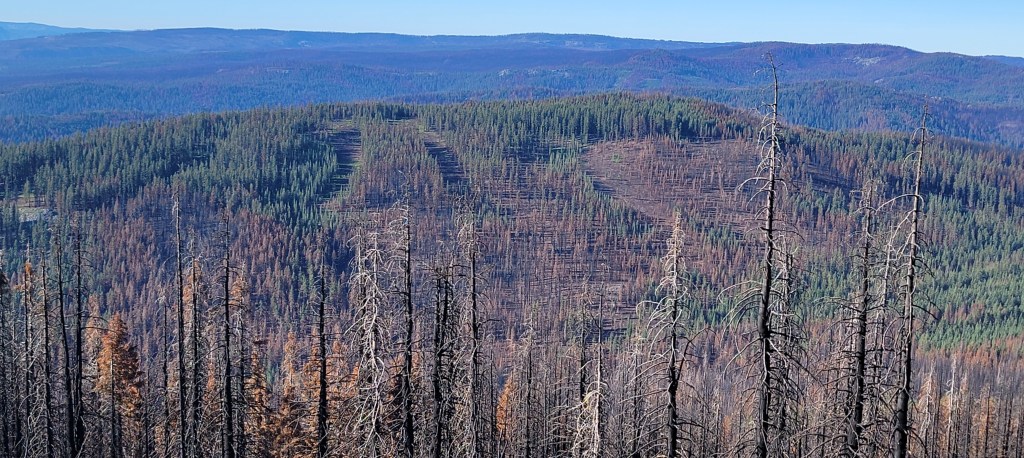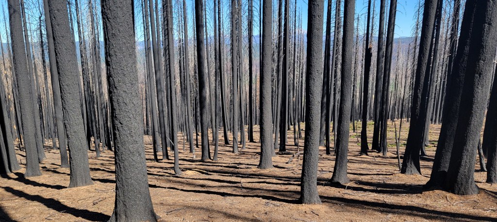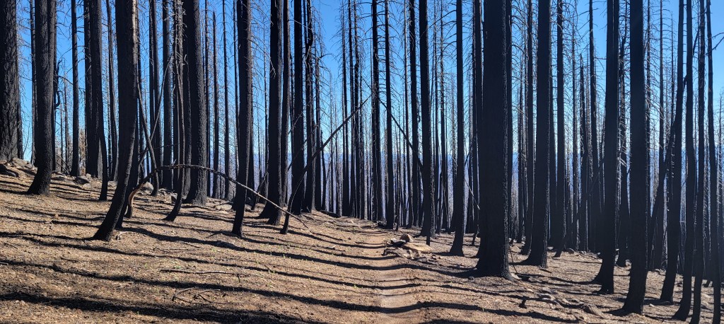 Let’s see, where to start. Was there less burn than yesterday? No. Was the trail less of a dust and ash pit than yesterday? No. Did it feel like I walked onto the set of a post-apocalyptic movie, or maybe some corner of hell? Yup. All joking aside, its hard to fathom just how large and devastating the Dixie Fire was until you spend days walking through its aftermath. I’ve been hiking through it for 2 days and still have another 40+ miles to traverse. It burned over 1,505 square miles. Trying to put that into perspective, the state of Rhode Island is only 1,214 square miles.