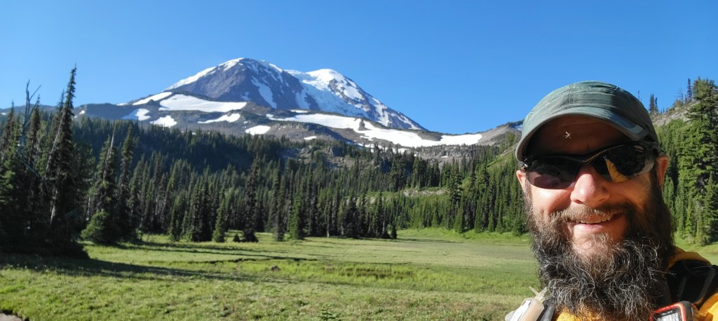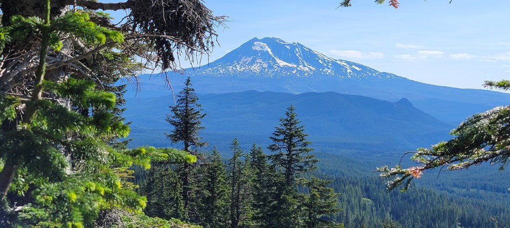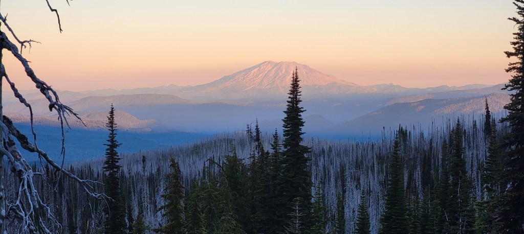 I started day 2 early, hitting the trail at 5:30am, to get in front of what was going to be a hot, 26 mile day. I started with more spectacular views of Mt. Adams as the trail traversed the western side of the mountain. I was treated to limited views of Mt. St. Helens and Mt. Rainier before diving back into tree cover for the last 10+ miles. My plans to take a lunch break 17 miles in were quickly squashed as I didn’t even manage to filter water before getting swarmed by mosquitoes. I grabbed some snacks, donned a bug net, and kept hiking instead.