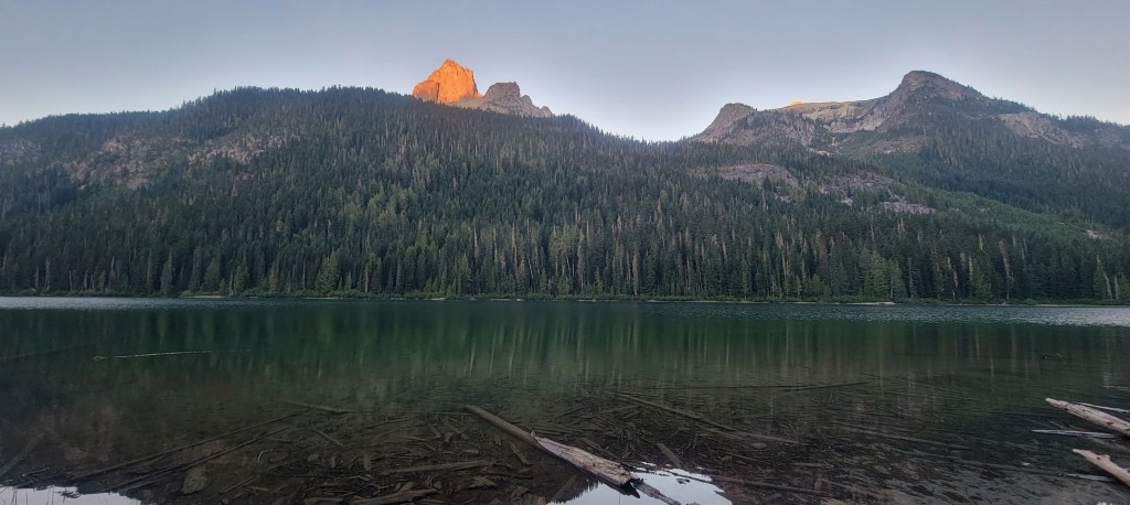 We turned off of the PCT still having completed 50 miles of the 70-mile stretch, and a couple miles further found a great campsite along Hyas Lake. Angela and Jessi would be picking us up from a nearby trailhead tomorrow. I sat around at camp the rest of the afternoon while Matt took the opportunity to climb up to Tuck Lake.
