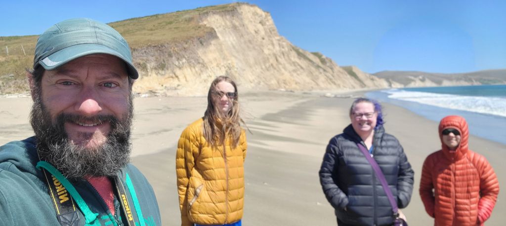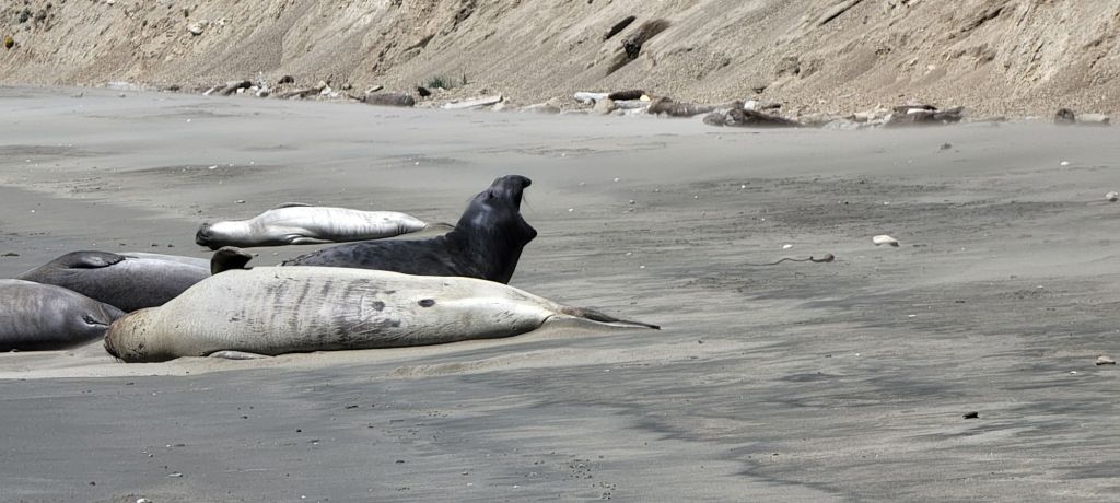 Gareth drove us to Drakes beach, and we headed along the windy beach on foot towards where we thought we had seen more seals from above. Interesting note here; you are allowed to get within 25 feet of the elephant seals, which is an uncomfortably short distance from such large wild animals. The wind picked up as we went, and we were soon slowed by sand being blown into the kids’ eyes. Further down the beach, we passed a solitary seal in the water before coming across a group of at least a dozen sunning themselves on the beach.