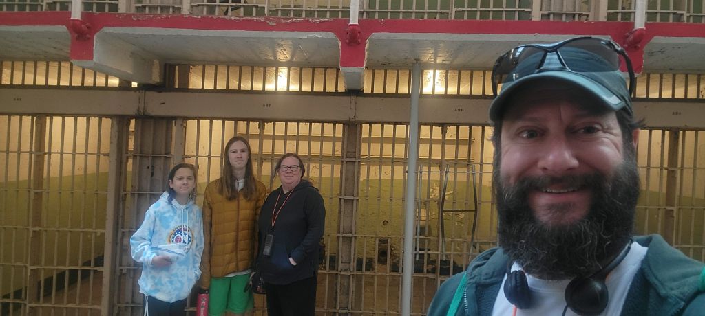And, we’re back to posting. We got distracted by a busy summer and will try to get caught up. Picking up where we left off starts with us spending a day in jail. So, we spent a day in jail.. No, really, we did. Andrew worked from the hotel before we headed to Alcatraz Island. The trip started with a quick 20-minute ferry ride to the island.